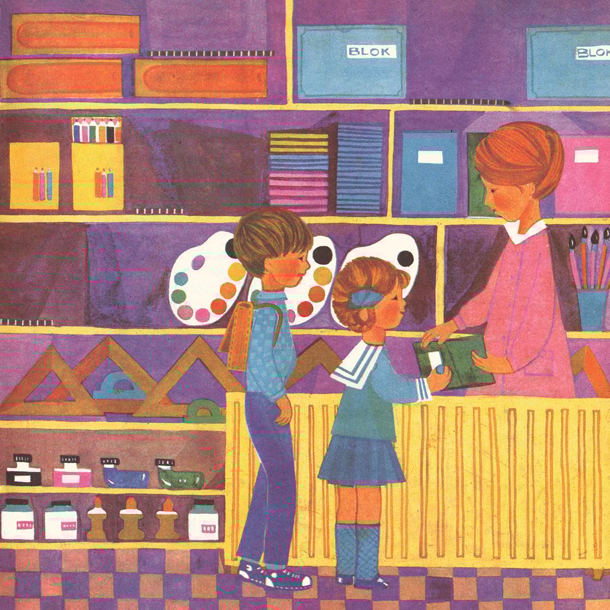 Czas na zabawę w sklepy! Najpierw rozwieźcie towary, a potem weźcie koszyk i chodźcie na zakupy! Wznowienie kultowej książki z lat 70. z elementami do wycięcia i złożenia.