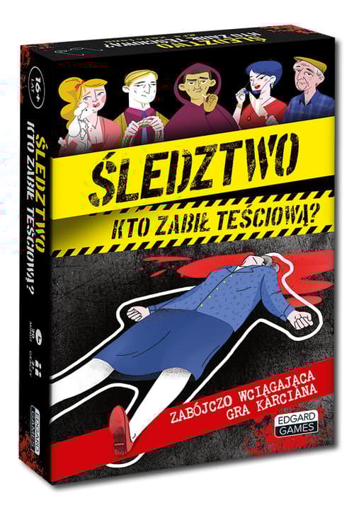 Gra kryminalna „Śledztwo. Kto zabił teściową?” Zabójczo wciągający sposób na świetną zabawę! Kto zabił teściową? Co wydarzyło się w mrocznej piwnicy? Dlaczego szantażowano influencerkę modową? Kto otruł księdza proboszcza? Wraz z towarzyszami rozgrywki wykorzystaj umiejętności dedukcji, żeby rozwikłać kryminalne intrygi i historie mrożące krew w żyłach. Śledztwo. Kto zabił teściową? to towarzyska gra kryminalna przeznaczona dla minimum dwojga graczy, w której dzięki trafnym pytaniom i precyzyjnej analizie zgromadzonych danych rozwiązujesz zagadki kryminalne. Na czym polega gra? Jeden z graczy wciela się w rolę świadka i na podstawie karty zbrodni oraz kart śledztwa układa historię przestępstwa. Pozostali gracze, odgrywający rolę śledczych, starają się zrekonstruować bieg wydarzeń, zadając świadkowi właściwe pytania. Dołącz do ekipy śledczych i daj się porwać w mroczne zakamarki wyobraźni! W pudełku znajdziesz zestaw 110 kart, w tym karty: osób, motywów, przedmiotów, miejsc, zbrodni, pomocy i kartę kto zabił teściową, które pomogą w zbudowaniu niesamowitych historii przyprawiających niejednego detektywa o zawrót głowy. Połączcie siły i wspólnie odkryjcie, co się wydarzyło! Wiek graczy: 16+ Liczba graczy: 2+ Czas rozgrywki: 20 minut