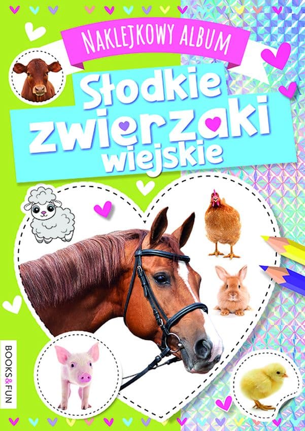 Jeśli uwielbiasz zwierzęta żyjące na wsi, to jest to książeczka dla ciebie. Znajdziesz w niej rysunki swoich ulubieńców, a każdą stronę możesz dodatkowo ozdobić naklejkami, by powstał piękny album.