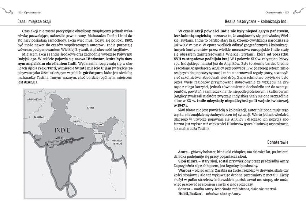 Wydanie Słonia Birary kompletne bez skrótów i cięć w treści. W tym wydaniu znajdziesz odpowiedzi na pytania z podręcznika - „pewniak na teście”, czyli wskazanie zagadnień, które zwykle pojawiają się w pytaniach z danej lektury we wszelkich testach sprawdzających wiedzę, a także w podręcznikach i na klasówkach. Książka zawiera pełen tekst lektury. Na końcu książki zamieszczono opracowanie, w którym znajduje się bardzo szczegółowe streszczenie oraz drugie skrócone, ułatwiające szybkie przygotowanie się przed lekcją. Opracowanie zawiera ponadto plan wydarzeń, wnikliwie wyjaśnioną problematykę oraz szerokie charakterystyki bohaterów. Gdy w wyniku nieszczęśliwego wypadku umiera jego dziadek, dziesięcioletni Amra zaczyna pracować jako poganiacz słoni. Tylko on może uchronić swoją rodzinę od popadnięcia w skrajną biedę. O świcie zjawia się na miejscu wyrębu dżungli, aby zastąpić zmarłego Bauliego. Ani słoń, ani chłopiec jeszcze nie wiedzą, że jest to początek ich wspólnej drogi pełnej nieoczekiwanych zwrotów akcji, która wiedzie m.in. przez dżunglę, pałac maharadży Tasfina i wąwóz zwany „wąwozem przyjaźni”. Słoń Birara to poruszająca powieść podróżnicza opowiadająca o przyjaźni małego chłopca i słonia, o ich niezwykłych przygodach i niebezpieczeństwach, z jakimi przyjdzie im się zmierzyć. Prosty język i ciekawe opisy egzotycznych krain, sprawiają, że trudno się oderwać od tej lektury. Nie wierzysz? Sprawdź sam!Szczegółowe informacje na temat książki Słoń Birara