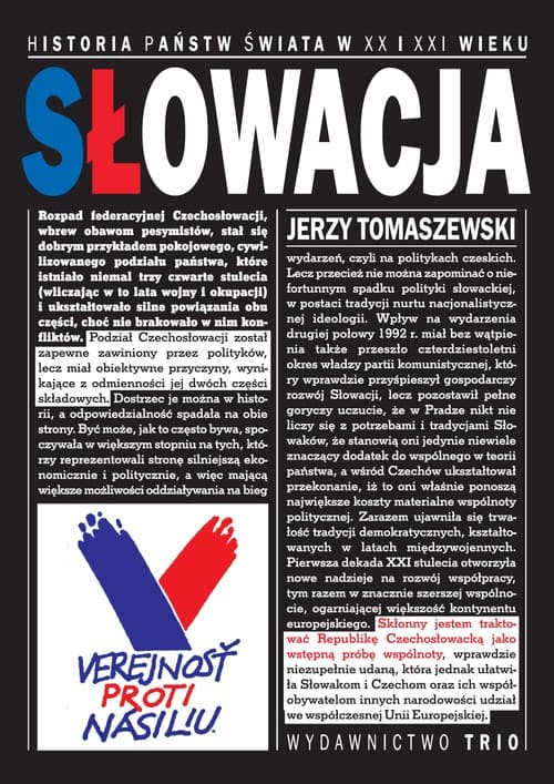 Pierwszy od 1938 r. na rynku polskim zarys historii Słowacji w XX i na początku wieku XXI, ze zwięzłą informacją o wcześniejszych dziejach. Wykład obejmuje okres od I wojny światowej, powstanie wspólnego państwa – Republiki Czechosłowackiej i miejsce w nim Słowacji niefortunny okres państwa słowackiego pod „opieką” III Rzeszy podczas II wojny światowej, losy Słowaków w powojennej Czechosłowacji zdominowanej przez komunistów, a następnie rozwój suwerennego państwa, aż do pierwszych lat wieku XXI. Autor zwraca szczególną uwagę na stosunki czesko-słowackie, w tym na podłoże rozbieżności, które doprowadziły do „aksamitnego rozwodu” 31 grudnia 1992 r.
