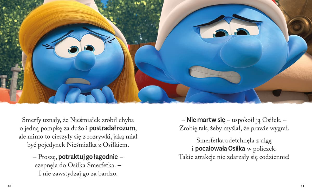 Zbiór ośmiu napisanych prostym językiem, krótkich opowieści o przygodach smerfów. Historie, stworzone na podstawie nowych odcinków serialu w wersji 3D, pomogą oswoić dziecko z codzienną lekturą – nie tylko przed snem! Przekonaj się, kim jest konkurent Osiłka do tytułu najsilniejszego smerfa w wiosce i sprawdź, kto kryje się pod przebraniem robota, którego boi się nawet Gargamel. Odkryj nowe, rewolucyjne projekty smerfowych ubrań i przeczytaj o tym, co wyczyniał Gargamel, zamieniwszy się na rozum ze swym kotem. W książce znalazły się następujące opowieści: Kto jest większym osiłkiem? Najstraszniejszy smerf, Nowy projekt, Smerf bohater, Zasmerfnijcie pasy, Drużyna ratunkowa, Smerfowy uśmiech i Uwaga na kota. Duże litery i niewielka ilość tekstu na stronie sprawią, że książka będzie świetnym materiałem do nauki czytania. Dynamiczne i pełne życia ilustracje zaczerpnięte wprost z serialu pozwolą maluchom przenieść się myślami wprost do wioski smerfów!