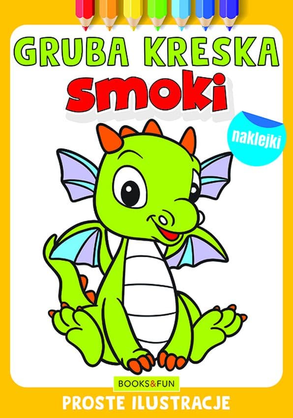 GRUBA KRESKA to kolekcja kolorowanek z prostymi rysunkami skierowana głównie do najmłodszych dzieci. Gruby obrys ułatwi kolorowanie i zapewni świetną zabawę. Nasza seria została przygotowana tak, aby ułatwić dzieciom ćwiczenie ręki. W środku czeka na nie niespodzianka – naklejki, które podpowiedzą maluchom, jakich mogą używać kolorów.
