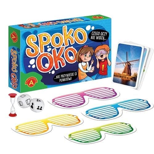 Sekret udanej gry rodzinnej? Proste zasady, krótka instrukcja, którą łatwo przeczytać w chwilę przed rozgrywką, ciekawa mechanika i gadżet. Spoko Oko to rozrywka, która na pewno zdobędzie serca młodszych i starszych graczy. Tym co od razu zwróci naszą uwagę są gadżety w postaci okularów, zasłaniających oczy, dwustronne karty oraz dwie kości funkcyjne. A jak grać? Miej oko na karty na stole. Za chwilę założysz opaskę, jedna z kart zostanie odwrócona, a Ty musisz powiedzieć która. Jeśli się pomylisz, punkty trafią do gracza, który sprytnie ją odwrócił. Gracz z największą liczbą punktów na końcu gry zostanie zwycięzcą. Wiek graczy: 4+ Liczba graczy: 2-4