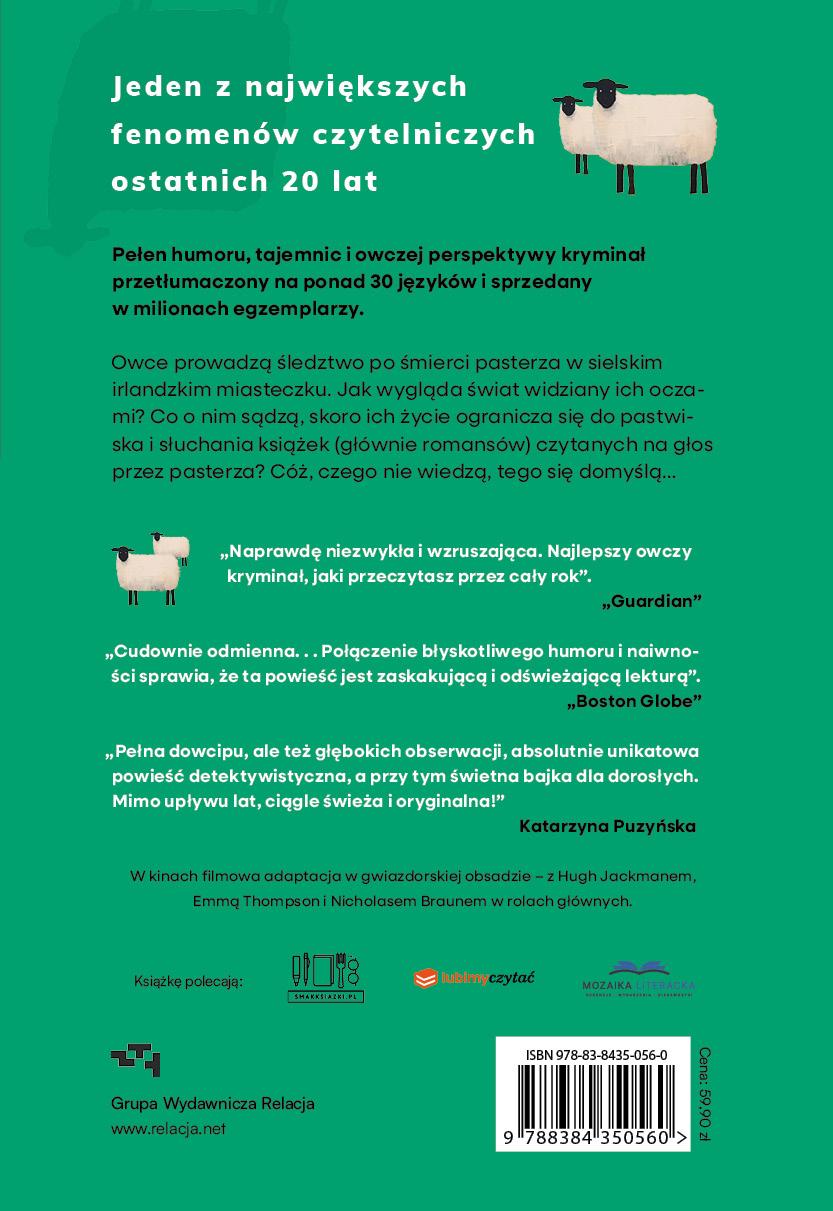 Kryminał pełen humoru, tajemnic i owczej perspektywy. Międzynarodowy bestseller przetłumaczony na 30 języków! Teraz również w kinach! W sielskiej irlandzkiej wiosce Glennkill ginie pasterz. Policja się zastanawia, a owce… działają. Uzbrojone w fragmentaryczną wiedzę o ludziach (zdobytą dzięki czytanym na głos książkom), własną logikę i ogromną determinację, rozpoczynają śledztwo pełne pomyłek, nieporozumień i zaskakująco trafnych wniosków. To kryminał, który bawi inteligentnym absurdem, czułością i humorem opartym na obserwacji. Lekki, przewrotny i absolutnie nie do pomylenia z żadnym innym – teraz także w wydaniu filmowym. „Naprawdę niezwykła i wzruszająca. Najlepszy owczy kryminał, jaki przeczytasz przez cały rok”. „Guardian” „Cudownie odmienna. . . Połączenie błyskotliwego humoru i naiwności sprawia, że ta powieść jest zaskakującą i odświeżającą lekturą”. „Boston Globe” Leonie Swann – dorastała w pobliżu Monachium, obecnie mieszka i pracuje na angielskiej wsi niedaleko Cambridge. Uzyskała stopnie naukowe z filozofii, komunikacji i psychologii na Uniwersytecie Monachijskim i w Monachijskiej Szkole Filozofii. Jej debiutancka powieść, Sprawiedliwość owiec, została opublikowana w 2005 roku i odniosła sensacyjny sukces, przez wiele miesięcy zajmując czołowe miejsca na listach bestsellerów. Od tego czasu została przetłumaczona na dwadzieścia sześć języków i zdobyła prestiżową Glauser Prize, a także nagrodę PETA.Szczegółowe informacje na temat książki Sprawiedliwość owiec