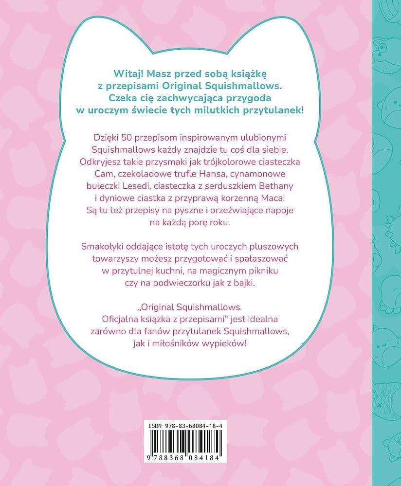 Pięknie ilustrowana kolorowymi zdjęciami każdego wypieku oraz grafikami Squishmallows, książka ta oferuje kreatywny i przystępny sposób na cieszenie się tymi unikalnymi przepisami. "Squishmallows: Oficjalna Książka z Przepisami" jest odpowiednia dla cukierników na każdym poziomie zaawansowania i stanowi doskonały sposób na spędzenie czasu z rodziną w tematyce ulubionych bohaterów Squishmallows.