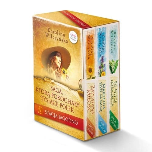 Stacja Jagodno to saga, którą pokochały tysiące Polek! Książki Karoliny Wilczyńskiej toseria ciepłych, mądrych opowieści osadzonych w przepięknej scenerii Gór Świętokrzyskich. To porywające historie o miłości, trudnych relacjach rodzinnych i poszukiwaniu własnego miejsca na ziemi. Stacja Jagodno łączy pokolenia, a każda z czytelniczek odnajdzie w bohaterkach cząstkę siebie. Zaplątana miłość.Tamara, 40-letnia rozwódka i specjalistka od PR-u, dostaje polecenie zorganizowania kampanii wyborczej kandydatowi na wójta gminy Jagodno. Podczas spotkania przedwyborczego jeden z oponentów zarzuca Tamarze, że promuje politykę prospołeczną, a sama zaniedbuje swoją rodzinę. Czy tak rzeczywiście jest? Jak córka Tamary, Marysia, poradzi sobie w nowej szkole? Czy nowy partner Tamary okaże się "tym jedynym"? Marzenia szyte na miarę.Powracają bohaterki znane z Zaplątanej miłości, ale na ich drodze pojawią się nowe, intrygujące postaci. Co ma wspólnego babcia Róża z doktor Ewą? I kto kryje się w tajemniczym dworku? Jagodno skrywa wiele sekretów, sięgających nawet czasów II wojny światowej… Po nitce do szczęścia.Do Jagodna przyjeżdża angielski kuzyn hrabianek, który musi odnaleźć się w polskiej rzeczywistości… Czy istnieją jeszcze jakieś tajemnice dworku, które nie zostały odkryte? I co może łączyć doktor Ewę z ojcem Łukasza? Prawdziwa przyjaźń i miłość są w stanie pokonać wszelkie przeciwności losu.
