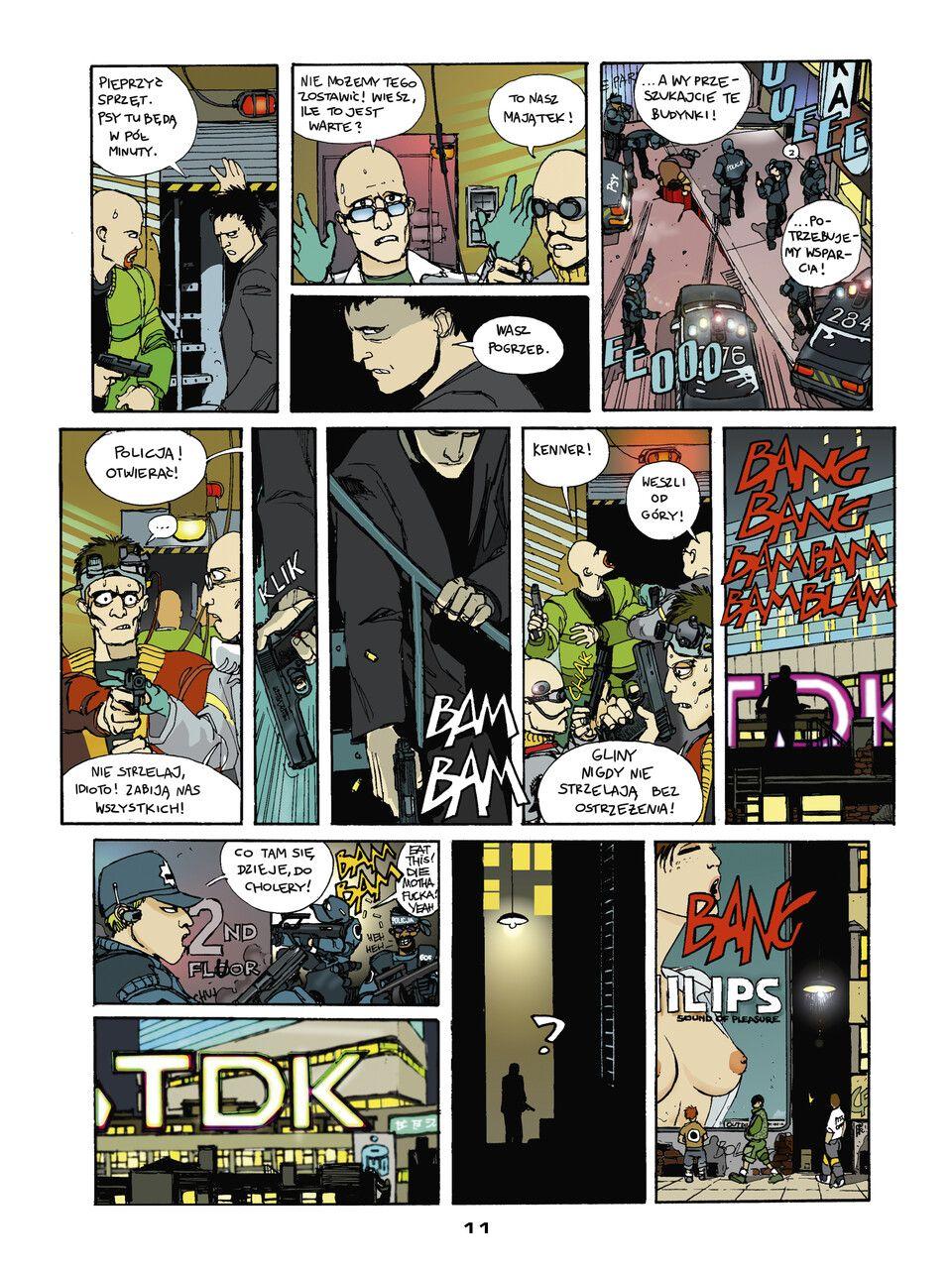 Jeśli nigdy nie mieliście do czynienia z cyberpunkiem to właśnie nadarza się ku temu bardzo dobra okazja. Na polskim rynku ukazało się bowiem wydanie komiksu polskich artystów, Roberta Adlera i Tobiasza Piątkowskiego, którzy inspirując się klasykami gatunku przenoszą go na nasze podwórko. W ten oto sposób powstają dwie niesamowite historie, które składają się na Status 7. Dwa opowiadania, które mamy okazję przeczytać na kartach komiksu to Breakoff i Overload. Obie zabierają nas do Warszawy przyszłości, która może przywodzić na myśl świat z takich tytułów jak choćby Łowca androidów czy z nowszych pozycji Edgerunners. Z taką właśnie stylistyką, przywodzącą na myśl wprawionym czytelnikom amerykańskie klasyki, mamy tutaj do czyniania. Obie historie malują nam niezwykły świat przyszłości. Niezwykle klimatycznie prezentuje się Warszawa pełna neonów, wieżowców i pędzących samochodów. Oba zawarte tutaj komiksy pochodzą z wczesnych lat 2000. Nie dziwi zatem fakt, że przedstawiona tutaj rzeczywistość wygląda trochę jak lata 90. podniesione do potęgi dziesiątej. W pierwszej z opisanych w Status 7 historii trafiamy do światka przestępczego. W grę wchodzi zdobycie grubej kasy. Najpierw trzeba jednak wykazać się zdolnościami hakerskimi choć nie tylko. Gra jest bowiem niebezpieczna, a by osiągnąć swój cel główny bohater musi ubezpieczyć się w odpowiednią broń i właściwych ludzi. Wiedzcie jedno - poleje się krew. - Człowieku! Z czego ty masz nerwy?! - Z Korei. Sam komiks jest bardzo dynamiczny, a sceny akcji naprawdę wciągają. Jednakże, ta technologiczna otoczka i związane z nią terminy mogą być nieco trudne do przyswojenia dla czytelnika, który z cyberpunkiem nie miał jeszcze do czynienia. Co ważniejsze, świat jest świetnie pokazany nie tylko za sprawą ilustracji, ale także rozmów bohaterów. Tu i ówdzie dowiadujemy się różnych faktów na temat tej rzeczywistości jak np. tego, że braliśmy udział w jakiejś wojnie na Bałkanach. Druga z historii Overload pokazuje nam świat przyszłości z perspektywy wymiaru sprawiedliwości. Jej głównym bohaterem jest czarnoskóry glina, podinspektor Górski, co najlepiej obrazuje nam jak w wyobraźni autorów komiksu zmieniła się Polska. Tutaj mamy do czynienia z przekrętem finansowym na wielką skalę. przestępcami walczącymi z systemem i policjantami narażającymi życie by ten system przetrwał nienaruszony. Ten sensacyjny komiks ma w sobie bodaj jeszcze więcej akcji niż Breakoff. W pamięć zapadają w szczególności sceny strzelanin i pościgów, których nie powstydziliby się w amerykańskich produkcjach. Znamienny jest obraz, gdy na tle Pałacu Kultury i Nauki widzimy wielką holograficzną reklamę rodem z Łowcy Androidów. Naprawdę ma się ochotę głębiej zanurzyć w tej rzeczywistości, ale akcja toczy się bardzo szybko i niestety nie mamy na to szansy w takim stopniu, w jakim byśmy sobie tego życzyli. Dialogi są mocne, zdecydowanie nie dla dzieci, gdyż bohaterom nieraz zdarza się przeklinać. Można jednak odnieść wrażenie, że w obu historiach brakuje nieco równowagi między ekspozycją świata i bohaterów, a piekielnie angażującą i wizualnie pociągającą akcją. Jeśli miałbym wskazać jeden minus komiksu to byłyby nim właśnie dialogi, których po prostu jest bardzo dużo na niewielkiej ilości stron i wyobrażam sobie, że część czytelników może przez nie nie przebrnąć. Ewentualnie czcionka, która w niektórych fragmentach nastręczyła mi trudności w lekturze. Fani cyberpunka i science-fiction z pewnością sięgną po Status 7. Drugiego tak świetnego, pełnego akcji, a przede wszystkim cudownego świata, który aż prosi się o eksplorację w polskim wydaniu po prostu nie mamy. Myślę jednak, że także resztę czytelników zainteresuje dotykająca tematyki nowoczesnych technologii czy walki z ludźmi u szczytu władzy, a także dynamiczne, barwne ilustracje.