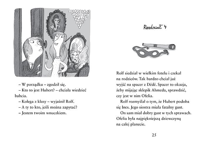 Rolf mieszka w centrum Paryża wraz ze swoją zamożną rodziną. Chcąc zaimponować Ofelii (według niego najpiękniejszej dziewczynie w mieście), zaczyna blefować, choć wcale nie było to jego zamiarem. Jak uda mu się wyplątać z tych wszystkich kłamstewek? I czy ostatecznie zdobędzie uznanie w oczach Ofelii? Trochę przygód, trochę miłości i spory ładunek humoru! Książka do samodzielnego lub głośnego czytania. Seria dobra dla dzieci, które właśnie zaczynają samodzielnie czytać – łatwemu czytaniu sprzyja duża czcionka oraz obecność ilustracji na każdej stronie. Druga z trzech książek o Rolfie szwedzkiej autorki Evy Susso i francuskiego ilustratora Benjamina Chauda. W Polsce znani są już z wcześniejszej współpracy przy książkach dla młodszych dzieci, takich jak bestsellerowe historie o Bincie, Lalo i Babo czy książki „Yeti” i „Duch z butelki”. Benjamin Chaud jest również ilustratorem książek o słoniu Pomelo, a także twórcą książek autorskich, m.in. „Żegnaj, Skarpetko!” i „Feralne urodziny ze Skarpetką”.