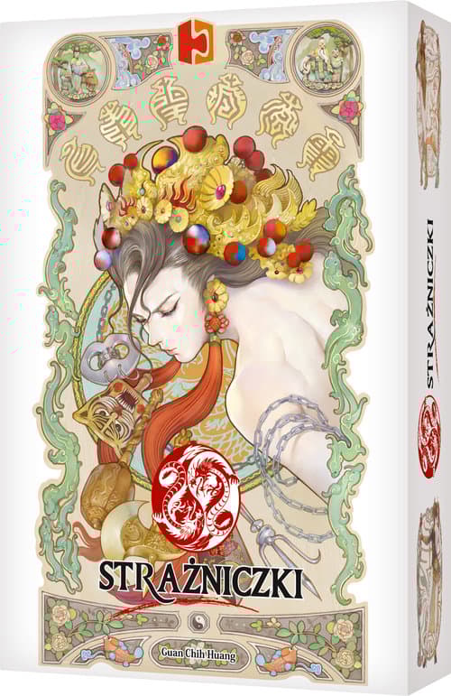 Zaawansowana gra blefu o doskonałej oprawie graficznej Od zarania dziejów dwie przeciwstawne siły stanowiły trzon wszechświata i współistniały w wiecznej równowadze. Nasza Bogini w swojej nieskończonej mądrości zesłała grupę Opiekunek, które chronią świat. Dysponują one mocą, która pozwala im nagiąć ludzkie losy według swojej woli, i za jej pomocą nieustannie walczą między sobą, by stworzyć idealną symetrię między cnotami oraz słabościami ludzkości. Stań przed wyborem: zapewnisz balans, czy całkowicie go zniszczysz, by osiągnąć własne cele? Strażniczki to gra z mechaniką blefu i doboru kart oraz dodatkowymi, zaskakującymi rozwiązaniami. Każdy z graczy kieruje Opiekunką, której celem jest nakierować losy ludzi zgodnie ze swoją wolą tak, aby stworzyć najlepszą kombinację cnót i słabości. Gra składa się z 3 faz: Dobór kart: każdy z graczy otrzymuje sześć losowych kart z talii, następnie wybiera jedną z nich, pozostałe zaś podaje graczowi po lewej stronie, i tak aż do momentu, w którym każdy z graczy wybierze 5 kart - pozostałe karty są odrzucane. Celem jest dobranie kombinacji kart, która zapewni jak najwięcej punktów zwycięstwa. Niektóre karty punktują samodzielnie, inne natomiast wymagają innych kart tego samego rodzaju, by przynieść korzyści. Osąd: wszyscy gracze umieszczają 5 wybranych przez siebie kart naprzeciwko siebie w dwóch rzędach: dwie karty zakryte oraz 3 odkryte. Na podstawie wyłożonych kart gracze zastanawiają się, który z nich ma najwyżej punktowaną kombinację. Po dyskusji każdy z graczy głosuje na wybraną osobę używając odpowiedniego żetonu. Wybrany gracz musi następnie potwierdzić, lub zaprzeczyć wynikowi głosowania. Jeśli gracz zgodzi się, że ma najsilniejszą kombinację kart, musi odrzucić 2 karty. Jeśli gracz zaprzeczy, faza kończy się, a wszyscy gracz ujawniają swoje wyniki. Jeśli wybrany gracz ma najsilniejszą kombinację, traci dwie karty, które dają mu najwięcej punktów; w przeciwnym wypadku dociąga on jedną dodatkową, wybraną przez siebie kartę ze stosu kart odrzuconych. Punktacja: każdy z graczy pokazuje swoje karty i podlicza swój wynik. W grze mogą pojawić się także inne fazy, w zależności od rodzaju Opiekunek występujących podczas rozgrywki - każda postać dysponuje specjalną zdolnością, która może zmienić przebieg gry. Przykładowo może to być możliwość podejrzenia zakrytej karty innego gracza, zabranie karty graczowi przed fazą punktacji, albo zamiana jednej karty w inną. Na koniec każdej rundy gracze zakrywają uzyskane żetony punktów zwycięstwa, aby nikt inny ich nie widział. Po trzech rundach wygrywa gracz z najwyższym wynikiem. Strażniczki to szybka i pięknie ilustrowana gra dla zwolenników blefowania i zwodzenia.