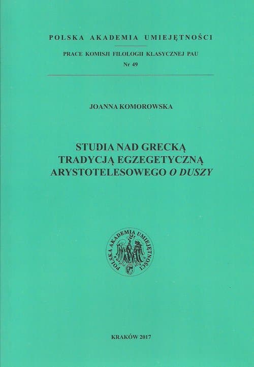 Studia nad grecką tradycją egzegetyczną Arystotelesowego O duszy Joanna Komorowska Książka