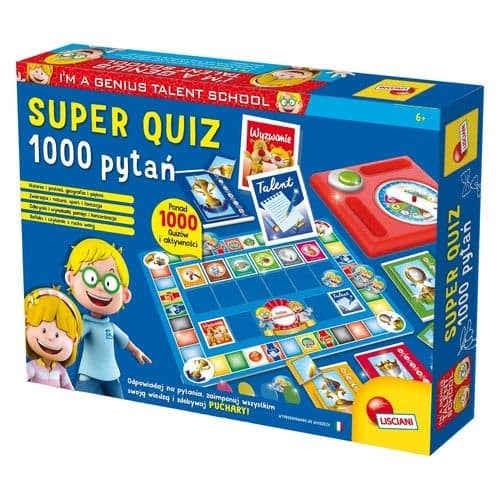 Oryginalna edukacyjna gra planszowa dla całej rodziny, zawierająca 312 kart podzielonych na różne kategorie. Podczas rozgrywki walczy się o zdobycie pucharu za udzielanie prawidłowych odpowiedzi na pytania, które nie są tak łatwe, jak mogłoby się wydawać.... Czy wiesz jak wygląda salamandra albo gdzie żyje meduza? Kto wynalazł telefon? Czym jest busola? Podczas rozgrywki poznasz odpowiedzi na wszystkie te pytania. Grę uatrakcyjnia elektroniczny stoper z dwoma trybami odliczania czasu: easy oraz sprint, a także spinner. Kto zostanie mistrzem super quizu? Czas się przekonać! Wiek graczy:6-12 lat