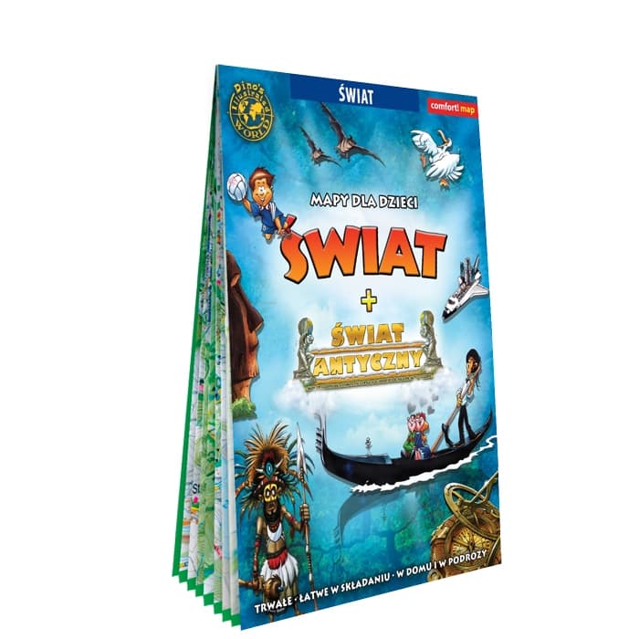 Rysunki są kolorowe, humorystyczne i przystępne dla dzieci – dzięki temu nawet najmłodsi odkrywcy z łatwością zdobędą ogólną wiedzę o świecie. Dodatkiem znajdującym się na odwrocie mapy świata jest bogato ilustrowana mapa świata antycznego.