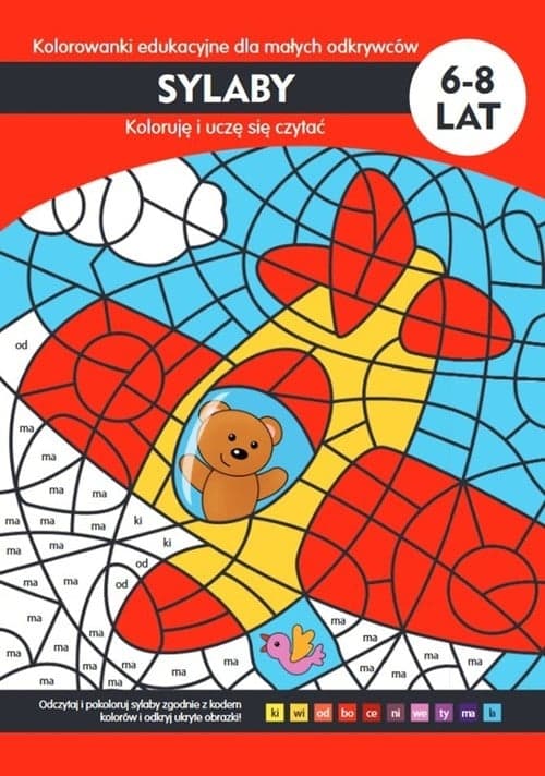 Ten wartościowy i atrakcyjny zeszyt edukacyjny przeznaczony jest dla uczniów pierwszego etapu nauczania. Poprzez fantastyczną i kreatywną zabawę polegającą na odczytywaniu sylab, kolorowaniu według kodu kolorów i odkrywaniu ukrytych obrazków, dziecko postawi pierwsze kroki w nauce czytania, a równocześnie udoskonali sprawność manualną przygotowującą je do umiejętności pisania. Kolorowanie interaktywne polegające na rozumieniu i posługiwaniu się kodem kolorów przyczyni się do rozwinięcia sprawności umysłowej dziecka.