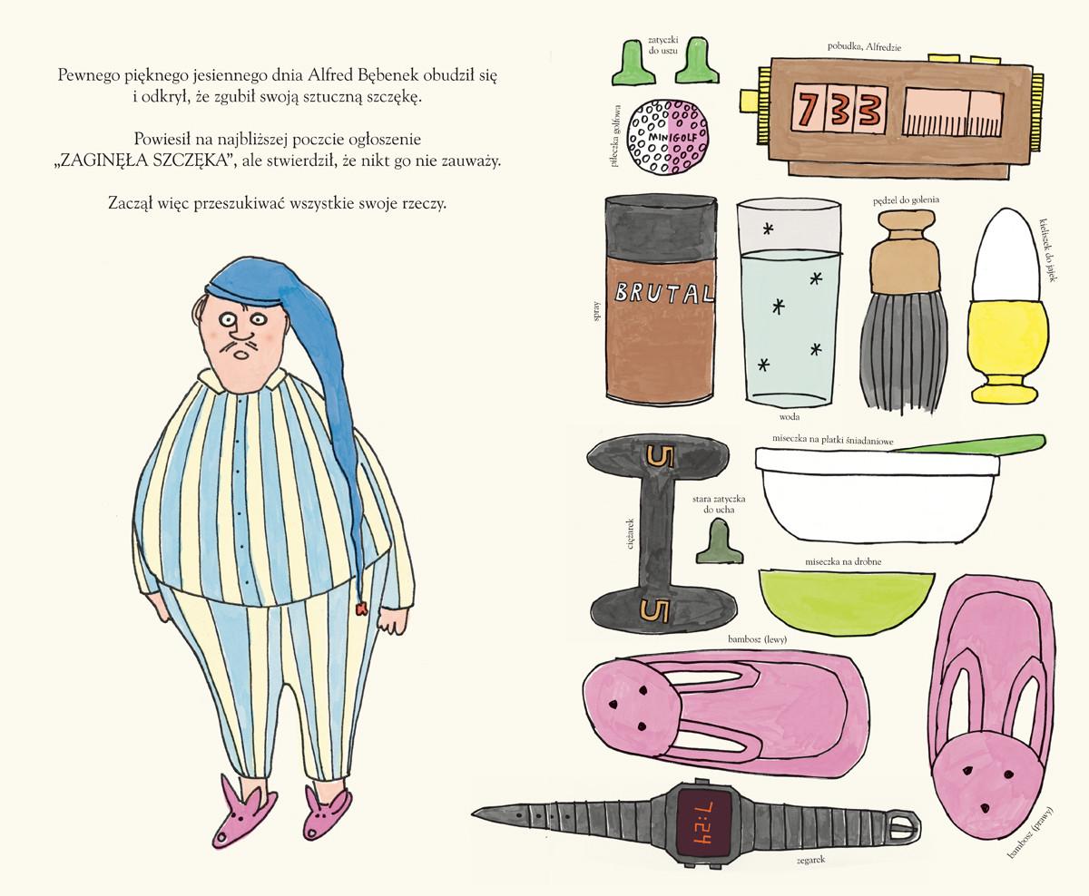 Alfred zgubił sztuczną szczękę. Ale nie martwcie się, znajdzie ją, musi tylko uporządkować swoje rzeczy. Ma ich całe mnóstwo, a niektóre są bardzo dziwne… Pomóżcie Alfredowi przejrzeć ten bałagan, a dowiecie się o nim więcej, niż wie o sobie on sam. A może przy okazji uda się wam znaleźć zaginioną szczękę?
