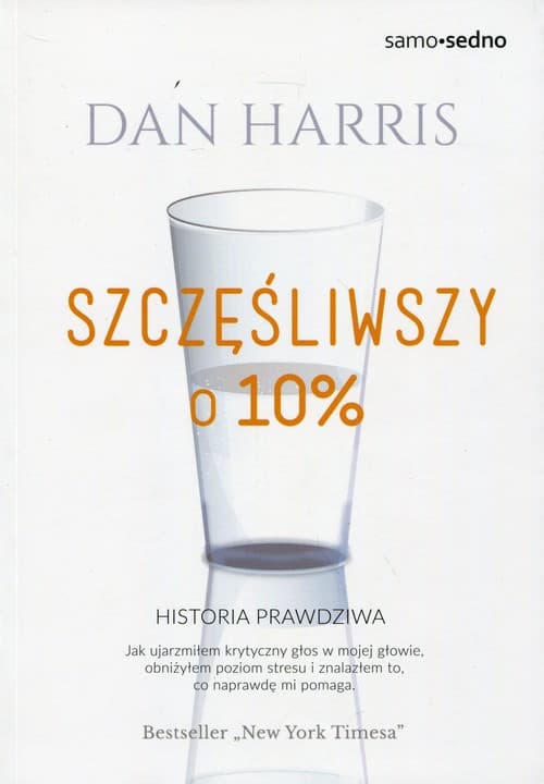 Zabawna i inteligentna historia sceptycznego dziennikarza, który odkrywa, że uważność i medytacja to najlepsze tematy, jakimi kiedykolwiek się zajął. Ta historia jest prawdziwa i zaczyna się w miejscu, w którym niejedna kariera mogłaby się skończyć. Młody, zdolny dziennikarz telewizyjnej stacji informacyjnej dostaje ataku paniki podczas nadawanego na żywo programu "Good Morning America". W jednej chwili wewnętrzny głos, który napędza jego lęki, przyprawia dziennikarza o oszalałe bicie serce, utratę tchu i niekontrolowaną gonitwę myśli. Dan Harris postanawia jednak stawić czoło strachowi i negatywnej samokrytyce. Z dziennikarskim zacięciem i osobistą motywacją konfrontuje swoją naturę sceptyka i niedowiarka z filozofią zen, buddyzmem, medytacją i neurobiologią. Stawia dociekliwe pytania takim mistrzom jak Eckhart Tolle, Jon Kabat-Zinn, Dalajlama, a także celebrytom i aktorom. Spędza kilka dni w ośrodku medytacyjnym oraz testuje polecone techniki na sobie. Wszystko to doprowadza go do wniosków spisanych w tej książce. Jeśli umiejętność skupienia się na tym, co dzieje się tu i teraz, i podejście do tego ze spokojem uczyni nas choćby o 10% szczęśliwszymi, to warto spróbować.