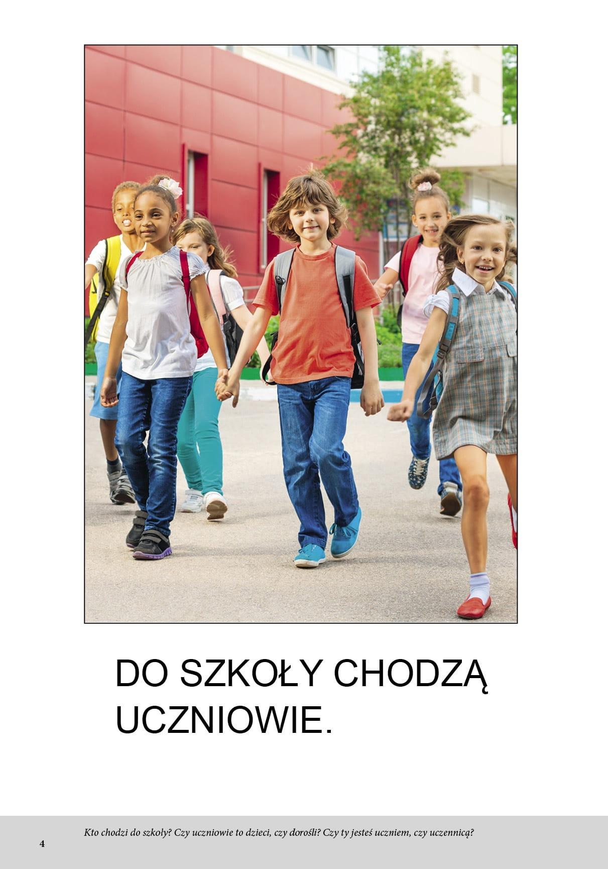 W tej publikacji przedstawiono zagadnienia dotyczące szkoły: ważne miejsca, wygląd klasy oraz czynności wykonywane przez nauczyciela, uczniów i dyżurnego.