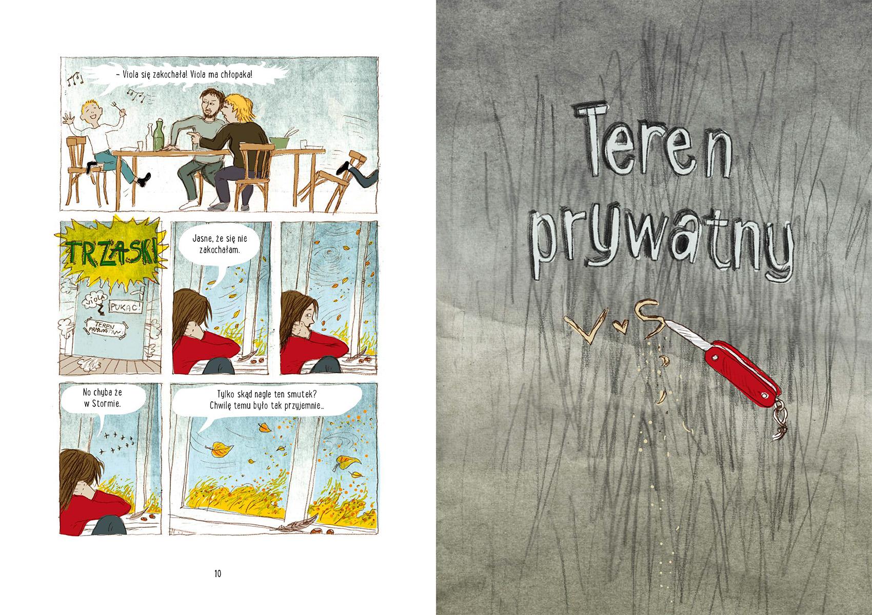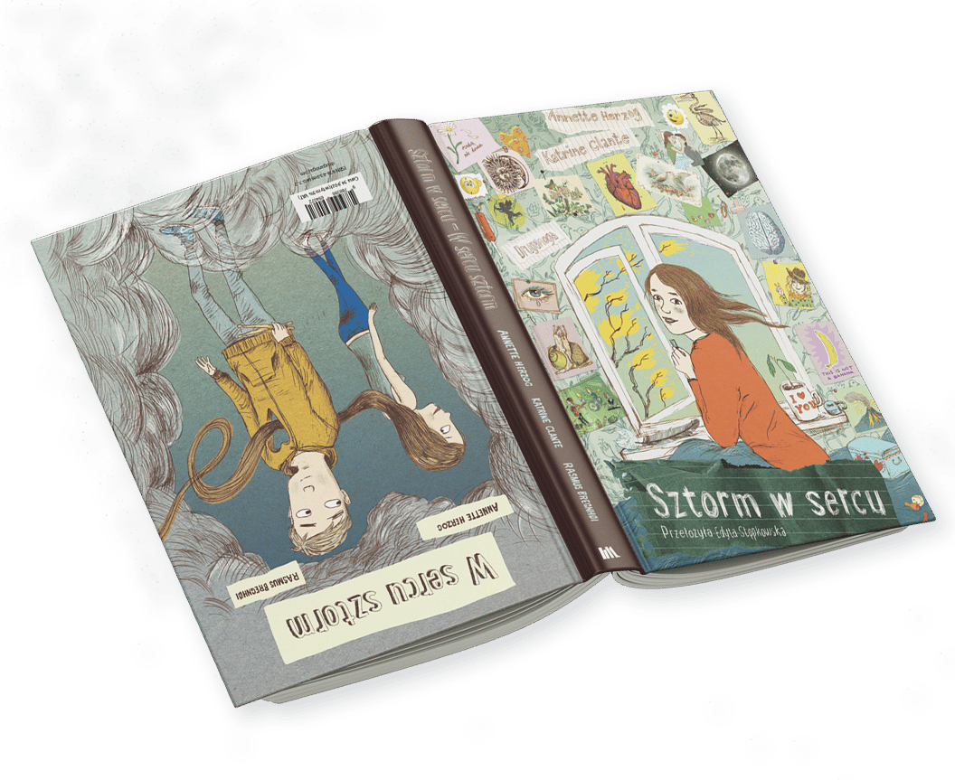 „Sztorm w sercu – W sercu sztorm” to powieść graficzna dla nastolatków, pełna wysmakowanych kolaży, tekstów piosenek, cytatów i ulotnych myśli, które krążą wokół jednego – pierwszej miłości. To książka o uniesieniach, nieporozumieniach, straconych okazjach i złamanym sercu, o trudach dojrzewania i wątpliwościach, które mu towarzyszą. Czy to, co się teraz ze mną dzieje, jest normalne? Czy jestem atrakcyjna? Czy mogę się jej podobać?
