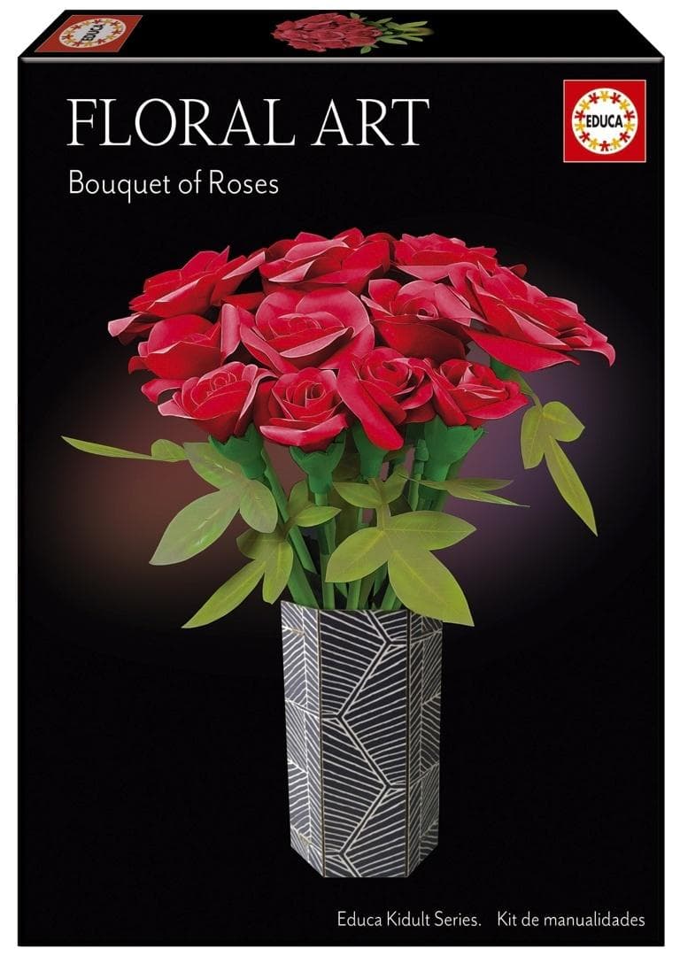 Pudełko zawiera wszystkie elementy niezbędne do stworzenia bukietu czerwonych róż. Ozdobne kwiaty można obracać, podnosić i opuszczać wzdłuż łodygi.