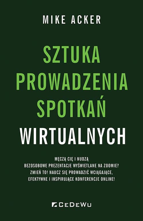 Jeśli pocisz się na samą myśl o spotkaniu na Zoomie, a ulgę przynosi Ci dopiero wyłączenie kamery, Mike Acker przychodzi Ci z pomocą! Ten trener do spraw komunikacji i mówca z dwudziestoletnim doświadczeniem napisał książkę dla wszystkich pracowników zmęczonych wideokonferencjami, a także szefów chcących poprawić jakość prowadzonych meetingów i przenieść swoje umiejętności interpersonalne w przestrzeń internetową, w której często ekran monitora stanowi przeszkodę. W niniejszej publikacji zamiast „lać wodę”, Autor daje konkretne rady, w jaki sposób pokonać tę barierę, a nawet wykorzystać ją jako swój atut w pracy zdalnej. Niezależnie, czy tego chcemy, świat zmienia się na naszych oczach i musimy się dostosować do zachodzących zmian. Mike Acker bez wątpienia jest idealnym przewodnikiem po nowej rzeczywistości.