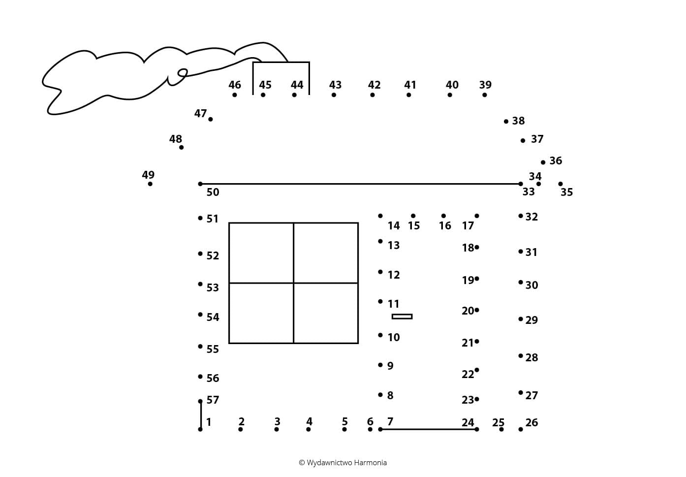 Zadaniem dziecka jest łączenie punktów w kolejności, zaczynając od tego oznaczonego cyfrą 1.