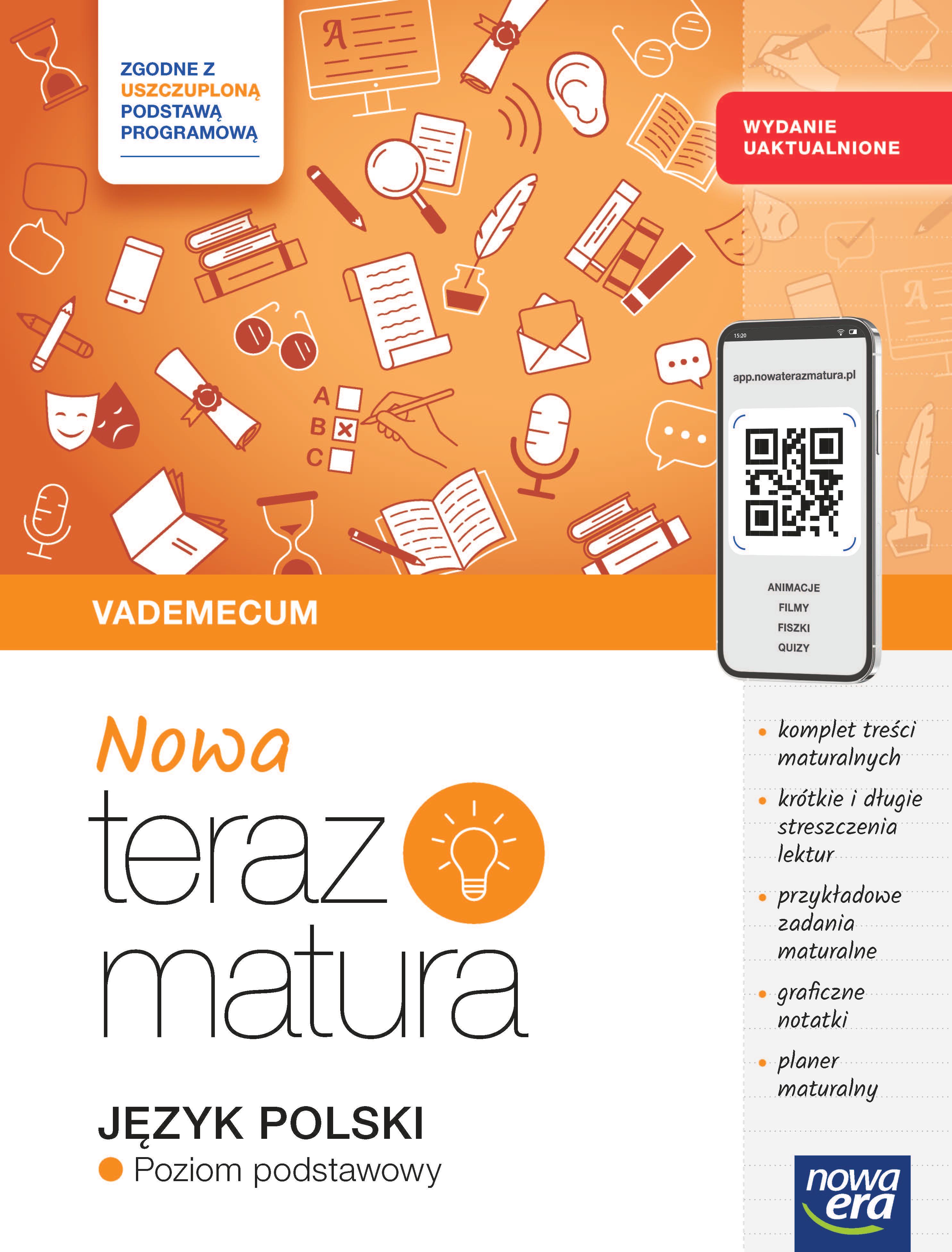 Vademecum z serii NOWA Teraz matura 2026 pomoże Ci przejść przez cały materiał wymagany na poziomie podstawowym – krok po kroku i konkretnie. Publikacja jest zgodna z uszczuploną podstawą programową, a jej uaktualniona wersja uwzględnia najnowsze zmiany w egzaminie.