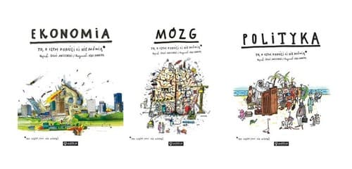 Mózg Najbardziej skomplikowany obiekt we wszechświecie – mózg – oraz procesy, które w nim zachodzą, omówione w prosty i zabawny sposób, zrozumiały dla każdego (od 9 do 113 lat). Skąd się wzięło myślenie i czy nam się opłaciło? Czy myślenie ma swoje granice? Kiedy nasz mózg nie daje rady, a kiedy działa znakomicie? Dlaczego tak często myślimy na skróty? Twój mózg a ty - kto tu właściwe rządzi? Dlaczego nastolatki myślą inaczej? Sztuczna inteligencja - nowy przyjaciel czy groźny wróg? Humor i ilustracje, które zapadają w pamięć! Ekonomia Zdecydowanie wyjątkowa książka dla każdego (od 10 do 113 lat). Skąd się biorą pieniądze, jak zarobić, ale się za bardzo nie narobić, co się opłaca, a co nie, gdzie kupić taniej, jak ratować sytuację, kiedy w skarbonce albo w portfelu widać dno. Po co Ci ekonomia?! Przekonaj się. "Ta książka dowodzi, że o ekonomii można mówić nie tylko jasno, ale i z humorem. Dostajemy tu solidną dawkę wiedzy o podstawowych i nieco bardziej zaawansowanych zjawiskach gospodarczych. Czyta się szybko, a zapamiętuje jeszcze szybciej - dzięki zabawnym, czasem przewrotnym rysunkom. To książka dla każdego młodego bystrzaka. Ale nie tylko! Mamo i tato: pożyczcie "Ekonomię" od waszego dziecka. Sporo się dowiecie, i będziecie się przy tym dobrze bawić!" Aleksandra Dziadykiewicz, dziennikarka Radia TOK FM, wyróżniona w Konkursie NBP im. Władysława Grabskiego dla dziennikarzy ekonomicznych w 2015 roku Polityka Nie ma zbyt skomplikowanych tematów dla młodego czytelnika. Prosty język, humor i wyjątkowe ilustracje sprawiają, że z pozoru trudne polityczne sprawy stają się zrozumiałe dla wszystkich (od 9 do 113 lat). Po co jest władza i jak ją zdobyć? Czy demokracja to najlepszy sposób na rządzenie? Do czego potrzebne jest państwo? Skąd państwo bierze pieniądze, czemu zawsze ode mnie i dlaczego aż tyle? Dlaczego politycy przepadają za kiełbasą wyborczą i czy można się nią przejeść? Przed czym chroni Konstytucja i dlaczego jest taka ważna? Jak zorganizować demonstrację albo zrobić małą rewolucję? Lektura obowiązkowa dla każdego młodego obywatela!