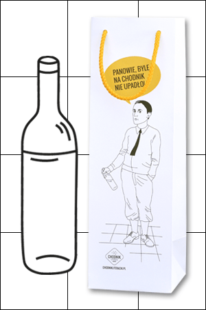 Żadne szkło z naszym literatem już na chodnik nie upadnie, i broń boże, się o bruk się nie roztrzaska! Nasz Witkaś oficjalnie obejmuje literackim patronatem wasze butelki kolorów rozmaitych, w szkle wielobarwnym, białym i przezroczystym! Wszak lepiej skończyć nawet w pięknym szaleństwie niż w szarej nudnej banalności i marazmie. Torba w rozmiarze 120x380x120 mm wykonana z wysokiej jakości papieru kredowego udźwignie nie tylko ciężkie półlitrówki Pana Tadeusza!