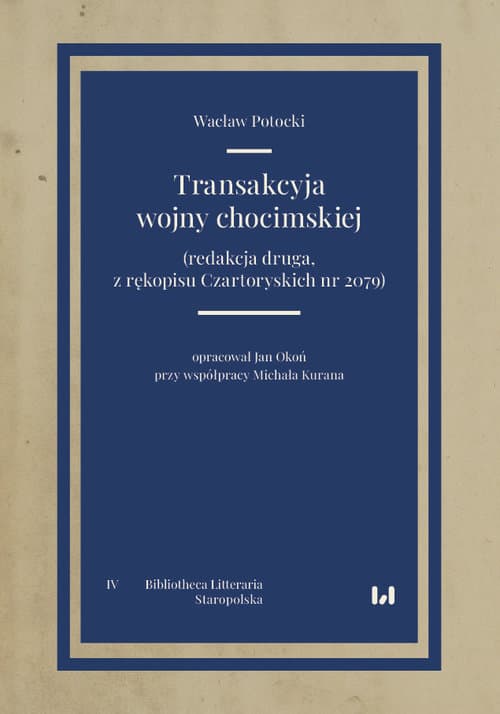 Bibliotheca Litteraria ma na celu upowszechnienie w zintegrowanej formie dokonań edytorskich łódzkiego środowiska naukowego, zwłaszcza polonistycznego. Służy uprzystępnieniu możliwie szerokiemu gronu czytelników dzieł ważnych z punktu widzenia dziejów literatury polskiej. Edycje ukazują się w czterech podseriach: Staropolska, Oświecenie, Wiek XIX oraz Wieki XX i XXI. * Epos Wacława Potockiego Transakcyja wojny chocimskiej, upamiętniający zwycięstwo wojsk Rzeczypospolitej nad armią sułtana Osmana II odniesione w roku 1621, stanowi największe dzieło epickie XVII wieku. Zachowaną jeszcze po upływie pół wieku pamięć o zwycięstwie Potocki próbował połączyć z wezwaniem do swoich współczesnych o powrót do dawnych cnót i męstwa ich przodków. Miało temu służyć jego wielkie dzieło, a w nim poetyka „ojczystego heroicum” — rodzima odmiana eposu bohaterskiego. Edycję obecną oddajemy do rąk czytelników sto lat po ukazaniu się przygotowanego przez Aleksandra Brücknera wydania ogłoszonego w serii Biblioteka Narodowa. Oparł je on na autografie pierwszej redakcji utworu (z grudnia 1670 roku) pochodzącej ze zbiorów Biblioteki Zakładu Narodowego im. Ossolińskich we Lwowie (Ossol. 1822/II). W roku 1934 Stanisław Laskowski podał informację o odnalezieniu w Bibliotece XX. Czartoryskich w Krakowie (rkps nr 2079) rękopiśmiennej kopii drugiej redakcji eposu (z roku 1675). Stanowi ona podstawę obecnego wydania i odpowiedź na postulaty kolejnych pokoleń badaczy. W nowej redakcji Potocki oddał hołd nie tylko Janowi Karolowi Chodkiewiczowi, Stanisławowi Lubomirskiemu i Kozakom dowodzonym przez Piotra Konaszewicza Sahajdacznego, lecz także z nieskrywaną nadzieją mógł uroczyście powitać Jana Sobieskiego jako zwycięskiego hetmana, a od 1674 roku króla. Poeta oparł zresztą relację na diariuszu sporządzonym przez jego ojca, Jakuba Sobieskiego, aktywnego uczestnika chocimskiej batalii sprzed pięćdziesięciu lat. * Wydanie Wojny chocimskiej w jej drugiej redakcji jest od dawna wyczekiwane […]. Publikacja tak obszernego tekstu jest przedsięwzięciem monumentalnym, zwłaszcza jeśli zważyć na pozycję Wacława Potockiego wśród literatów staropolskich. To jedno z najważniejszych zadań edytorstwa naukowego w Polsce. Pisali o tym liczni badacze, ja sam parokrotnie wskazywałem na pilność tego zobowiązania edytorów. Z radością więc przyjąłem wiadomość o tym, że zamierza je wypełnić Wydawnictwo Uniwersytetu Łódzkiego. Z recenzji prof. dr. hab. Janusza Gruchały