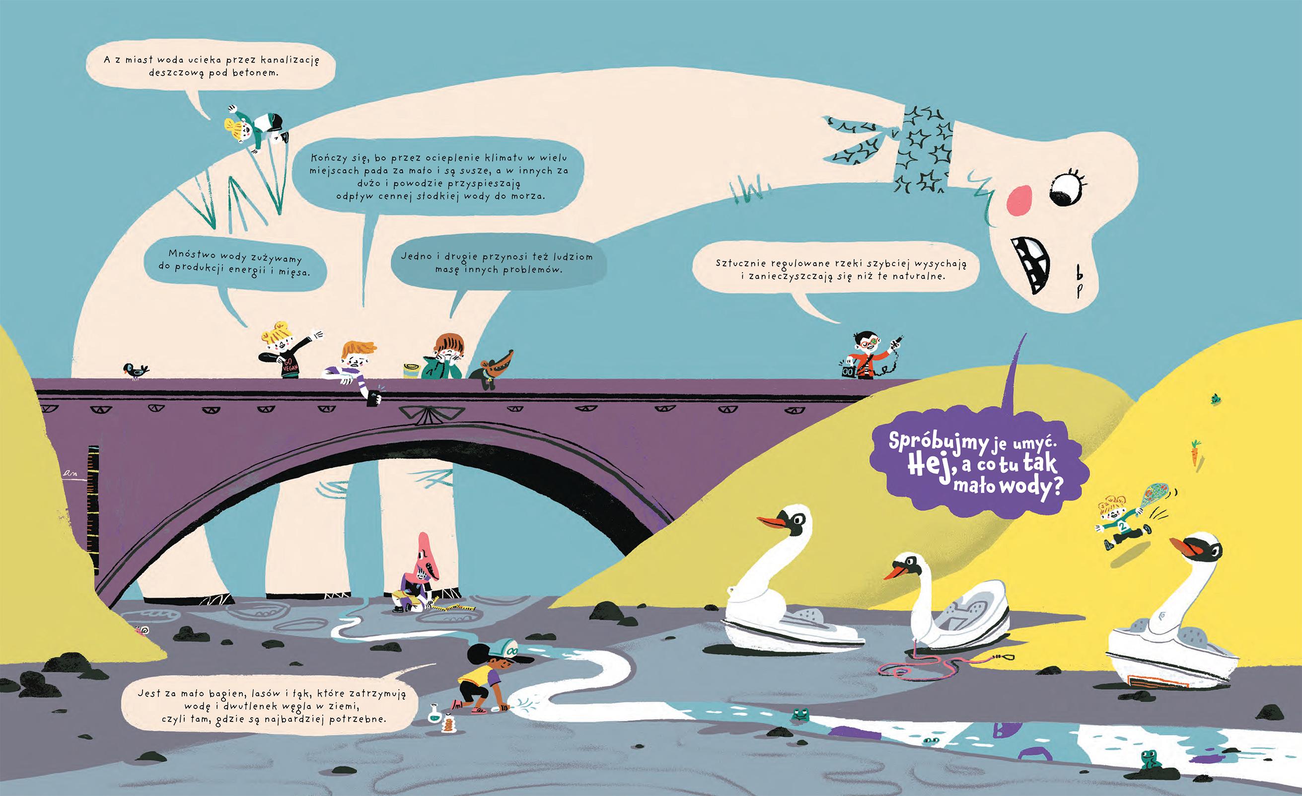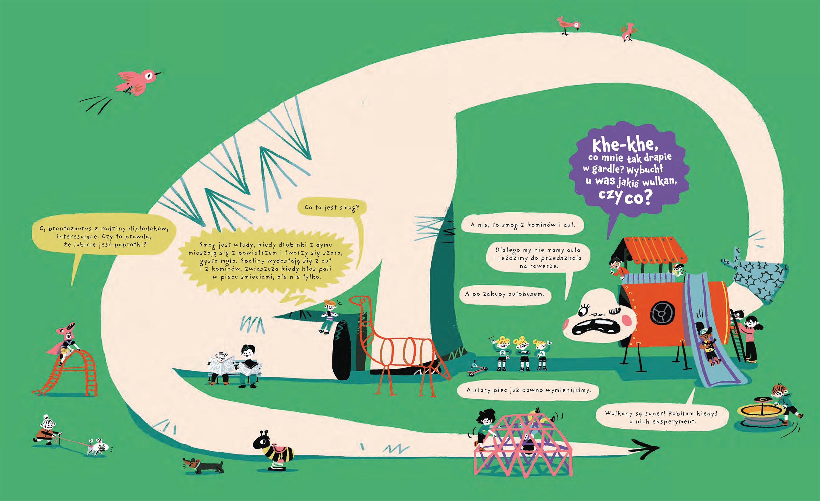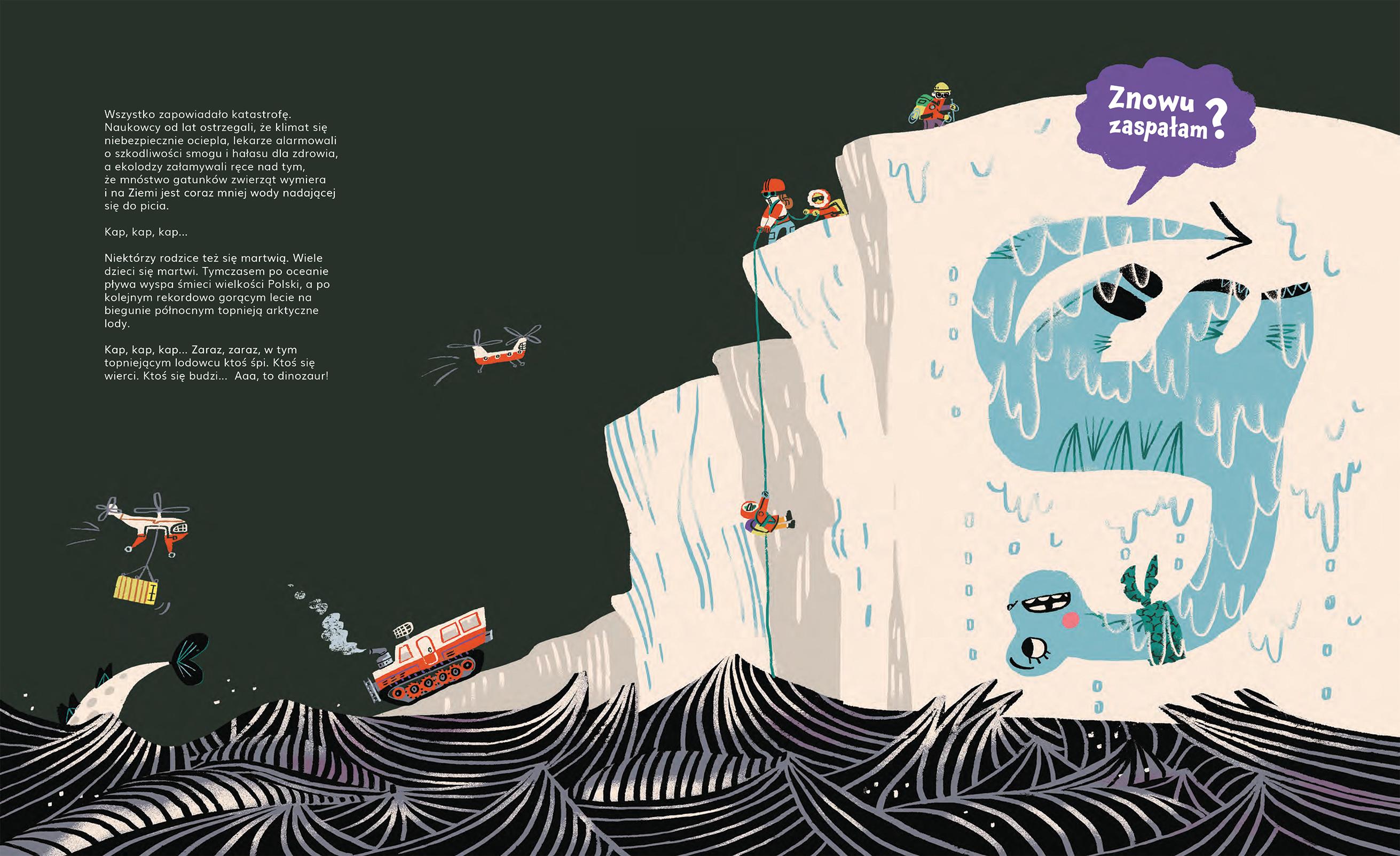 Żeby uratować świat, trzeba działać Tu i teraz! Dzieci, jak mało który dorosły, żyją tu i teraz. Uważnie przyglądają się światu i całkowicie poświęcają się swoim sprawom. Kiedy w Miastoszewie nieoczekiwanie pojawia się uwolniona z roztopionego lodowca brontozaurzyca o wdzięcznym imieniu Nadzieja, natychmiast rozpoczynają wspólną przygodę. Sprawdźcie, czego dzieci nauczą ją o dzisiejszym świecie u progu katastrofy klimatycznej i co dostaną w zamian… Nieoczywista i zabawna książka o ekologii jest kontynuacją współpracy autorów książki Miasto Potwór Joanny Guszty i Przemka Liputa z wydawnictwem Kropka. Joanna Guszta – współzałożycielka wydawnictwa i studia graficznego Ładne Halo. Autorka książek dla dzieci. Pisze, pracuje z tekstem, ale potrafi też myśleć obrazem i korzystać z niego w narracji. Aktywnie współpracuje z ilustratorami i wydawnictwami, chętnie opracowuje koncepcje wydawnicze i scenariusze twórczych warsztatów wokół książek. Wspólnie z grupą Mamy Projekt współtworzy i redaguje serię przewodników dla rodzin po miastach i lasach NIEMAPA. Dla Miesięcznika Znak pisze krótkie felietony o znakach graficznych. Absolwentka politologii na Uniwersytecie Śląskim i socjologii na Politechnice Śląskiej. Mieszka i pracuje w Łodzi. Przemysław Liput – Urodził się w 1985 r. w Sanoku. W 2010 roku ukończył studia na kierunku Grafika na Wydziale Sztuki Uniwersytetu Pedagogicznego w Krakowie. W 2017 roku uzyskał stopień doktora sztuki pod kierunkiem dr hab. Grzegorza Hańderka. Jest autorem ilustracji do książek: „Rok w przedszkolu”, „Ziemia do Jadzi”, serii „Jano i Wito”. Od 2011 prowadzi zajęcia z animacji na Wydziale Sztuki Uniwersytetu Pedagogicznego w Krakowie. Realizuje prace w technikach graficznych, rysunkowych oraz wideo.Szczegółowe informacje na temat książki Tu i teraz!