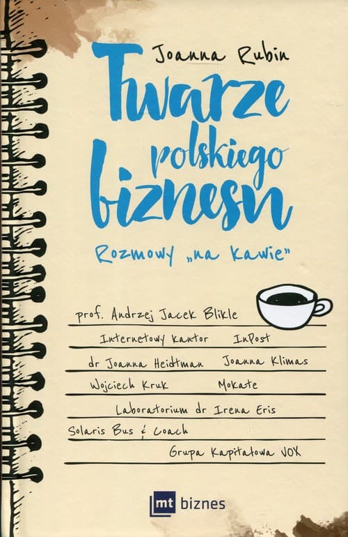 Pasja to dobry przepis na życie, ale to nie jest książka o złotych receptach na sukces. Blogerka Joanna Rubin zaprosiła do rozmowy przy kawie ulubionych liderów polskiego biznesu: -dr Irenę Eris -Teresę Mokrysz -Solange Olszewską -Joanną Klimas -Piotra Voelkela -Wojciecha Kruka -Rafała Brzoskę -prof. Andrzeja Blikle -Michała Czekalskiego -Łukasza Olek. Każdy z bohaterów książki odkrył w sobie talent i pasję, motywację do działania, cel do którego zmierza i zdefiniował swoją misję, którą realizuje w biznesie. Jednak motywem przewodnim publikacji jest to, że wszyscy się możemy od siebie uczyć, a wiedza jest na wyciągnięcie ręki i warto się nią dzielić. Dyskutowali o swoich historiach, marzeniach i wartościach, za które dadzą się pokroić. Wszystkie wywiady w niezwykły sposób podsumowała wybitna psycholog dr Joanną Heidtman. Joanna Rubin Jej życiowa mantra to wolność, niezależność i odpowiedzialność. Fascynują ją liderzy klasy A, relacje uczeń-mistrz i procesy zmian. Jest autorką bloga, gdzie rozmawia z praktykami i psychologami biznesu. Zanim zaczęła blogować, blisko 10 lat spędziła w departamentach sprzedaży w instytucjach finansowych. Joanna podpisuje się pod słowami Brene Brown: "Wrażliwość nie jest oznaką słabości. To matka kreatywności, innowacji i zmian".