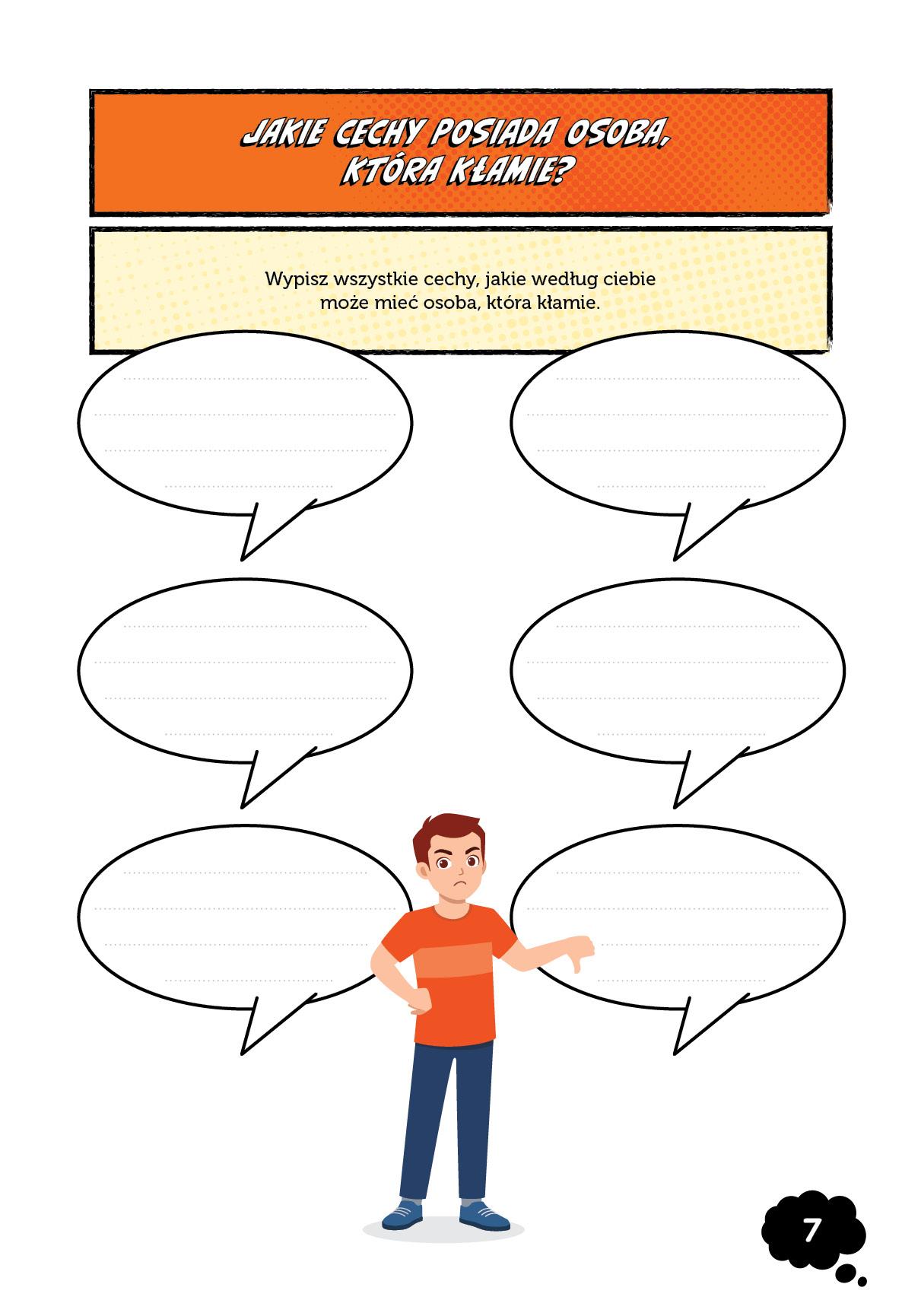 Karty pracy, przeznaczone dla uczniów w wieku 8–15 lat, zawierają ćwiczenia przydatne przy rozwijaniu umiejętności mówienia prawdy, nawet w trudnych sytuacjach.
