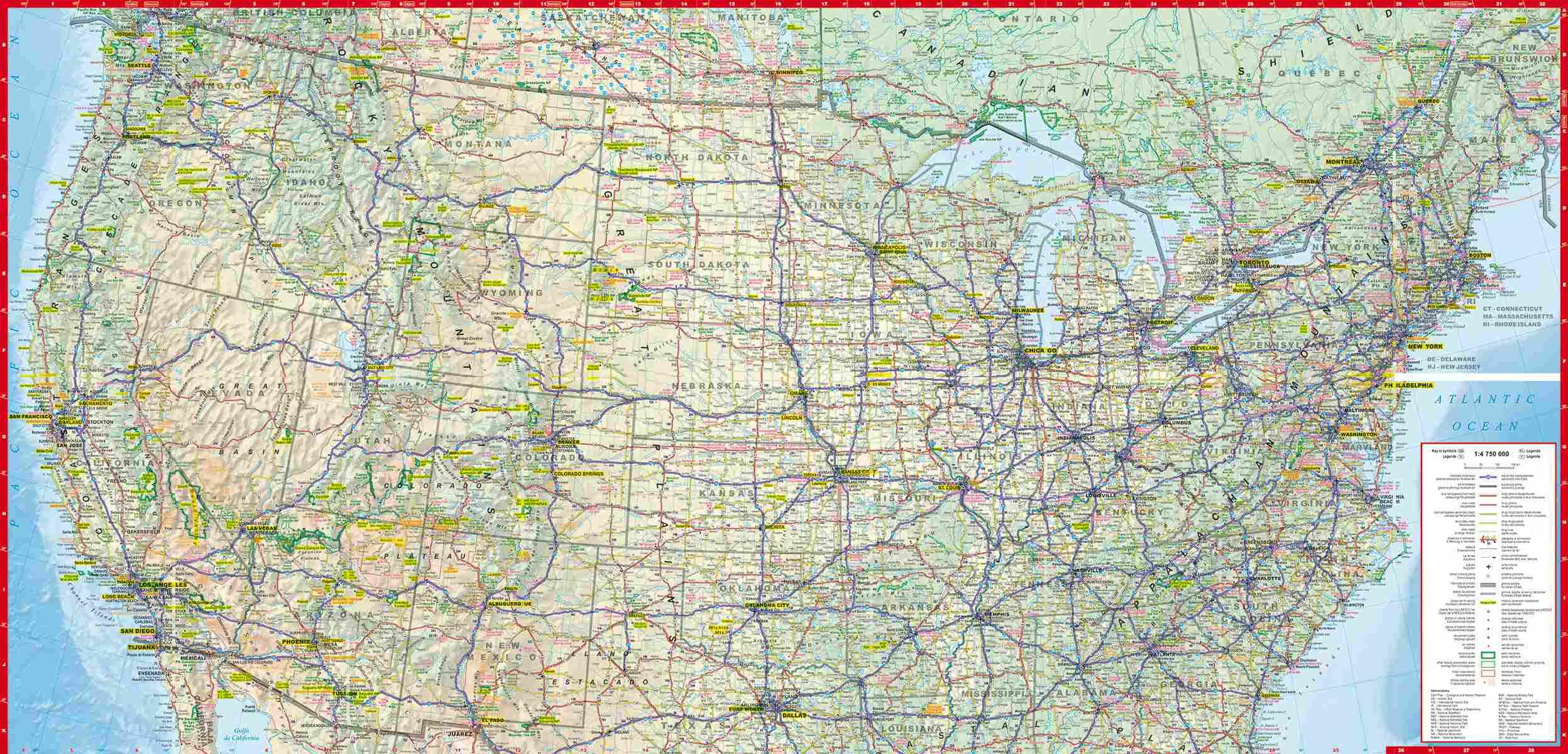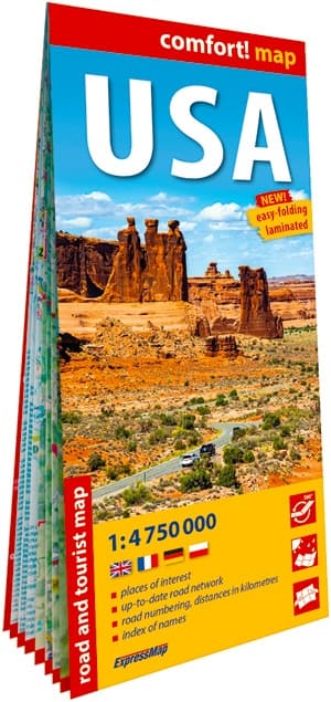 O książce USA laminowana mapa samochodowo-turystyczna 1:4 750 000