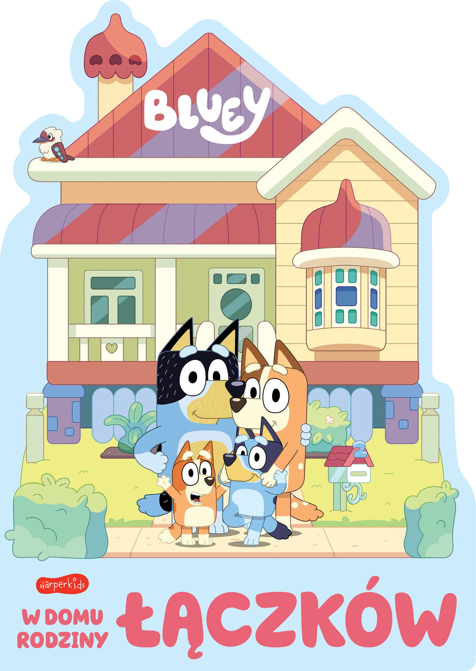 Wyjątkowa kartonowa książka w kształcie domu, w którym mieszkają Blue, Bingo oraz ich rodzice. W co się bawią Blue i Bingo pod dachem? A w co na dworze? Dołącz do rodziny i zobacz, na czym polega zabawa w Szpitalik i jakich odkryć można dokonać w salonie fryzjerskim, którego klientem jest Tata. Na każdej stronie książki bohaterowie zajmują się czymś innym, ale za każdym razem mają frajdę nie z tej ziemi! Ciepły klimat znany z kreskówki, zabawne powiedzenia i wyjątkowy język bohaterów sprawią, że maluchy nie będą chciały się rozstać z książką. Gruby karton pozwoli na długie godziny zabawy, a zaokrąglone rogi zapewnią bezpieczeństwo. Książkę można także ustawić pionowo, by sceny z domu Łączków posłużyły za scenografię do zabaw wymyślonych przez dziecko samodzielnie.