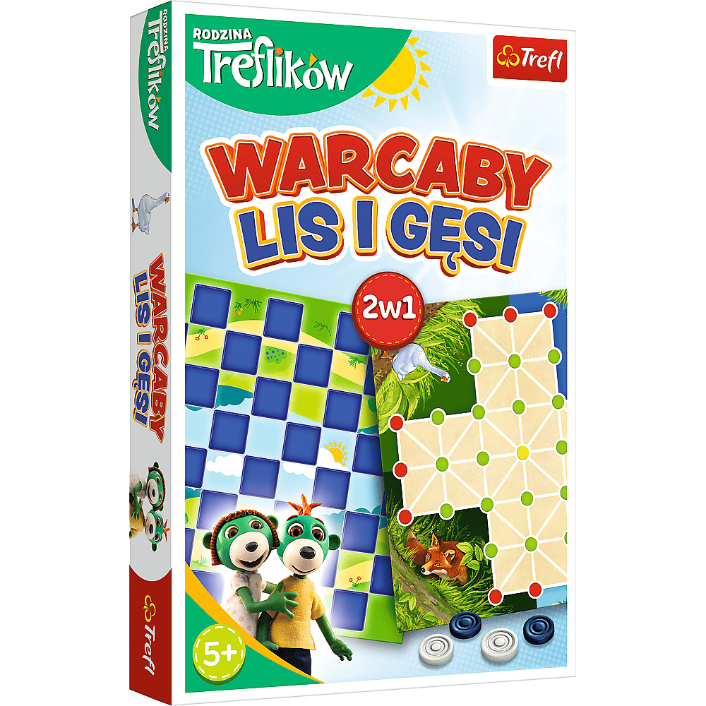 Tradycyjnie dobra zabawa z bohaterami serialu Rodzina Treflików! Zaplanuj kilka ruchów do przodu i zaskocz przeciwnika. Warcaby i Lis i Gęsi to gry, które uczą podstaw strategicznego myślenia. Różnorodne warianty sprawiają, że Warcaby oraz Lis i Gęsi niezmiennie bawią graczy w każdym wieku. Wiek graczy: 5+ Liczba graczy: 2 Czas rozgrywki: 10-20 minut