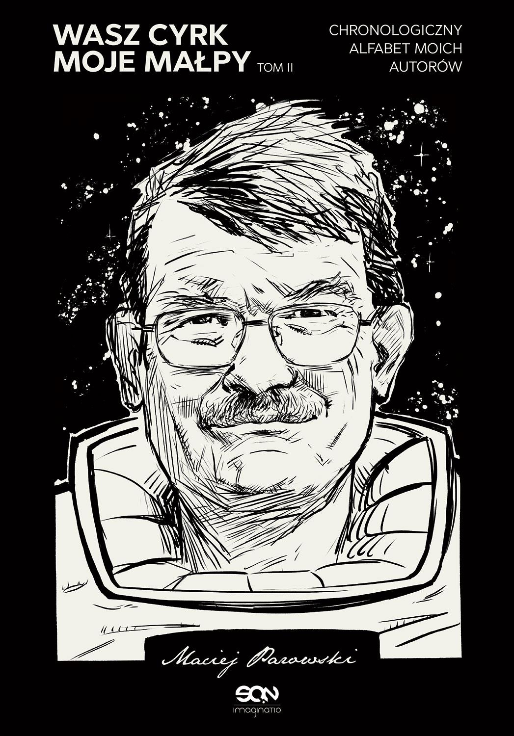Wizjoner, redaktor, bojownik o kulturę. Maciej Parowski był w Polsce jednym z pierwszych znawców kultury popularnej, który już pół wieku temu bronił fantastycznej literatury, komiksu i kina. To on był akuszerem cyklu o wiedźminie Geralcie Andrzeja Sapkowskiego. To on skontaktował ze sobą Jacka Dukaja i Tomka Bagińskiego, wskutek czego powstała nominowana do Oscara animowana Katedra. To on, jako redaktor kultowej „Fantastyki” i „Nowej Fantastyki”, wychowywał całe pokolenia kolejnych twórców i czytelników. Wasz cyrk, moje małpy. Chronologiczny alfabet moich autorów to dwutomowy, okraszony licznymi zdjęciami zbiór esejów i rozmów traktujących o stanie gatunku, a przede wszystkim blisko dwieście portretów krytycznych i anegdot o twórcach, którzy w latach 1982–2012 zmieniali oblicze polskiej fantastyki. „Jacek Dukaj i Krzysztof Bartnicki należą do tych poszukiwaczy czy kabalistów literatury, którzy zaczynali w „NF”, a potem wędrowali poza dostępne mi horyzonty. Poznaję się na ich literackich pierwocinach, zdobywam sympatię, nawet wdzięczność, potem wpadam w panikę, bo nie nadążam, a oni odruchowo dalej traktują mnie jak swego. Jestem niczym kwoka, której los pozwolił wysiedzieć łabędzie jaja, a która teraz wędruje nieszczęsna brzegiem jeziora pełna zgryzoty i zachwytu nad tym, co wyprawia jej przybrane potomstwo na przestworze wód”. Maciej Parowski Tom drugi obejmuje lata 1996-2012.