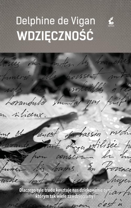 Dlaczego tyle trudu kosztuje nas dziękowanie tym, którym tak wiele zawdzięczamy? „Przytłaczająca, realistyczna Wdzięczność jest zaproszeniem dla czytelnika do podziękowania słowami i gestami, póki jeszcze nie jest na to za późno”. Le Journal de Québec Jérôme, trzydziestopięcioletni logopeda, mówi o sobie, że pracuje ze słowami i milczeniem. Z tajemnicami, wstydem, zwierzeniami, strachem przed śmiercią. Ale tym, co wciąż zdumiewa go najbardziej, jest długotrwałość cierpień z dzieciństwa. To właśnie to palące piętno wiąże ze sobą pracującego w domu opieki Jérôme’a, Michkę, starszą panią, jego podopieczną, która stopniowo traci zdolność posługiwania się słowami, i młodą Marie, bardzo bliską Michce kobietę. De Vigan, odkrywając niespiesznie relacje między tą trójką, snuje opowieść o tym, jak ważne jest, by na czas powiedzieć bliskim to, czego dotąd nie mieliśmy odwagi, i to, o czym wciąż mówiliśmy za mało. Delphine de Vigan kontynuuje podjęte w Lojalności rozważania na temat tego, co czyni nas ludźmi, odkrywając przed czytelnikami najróżniejsze odcienie wdzięczności.