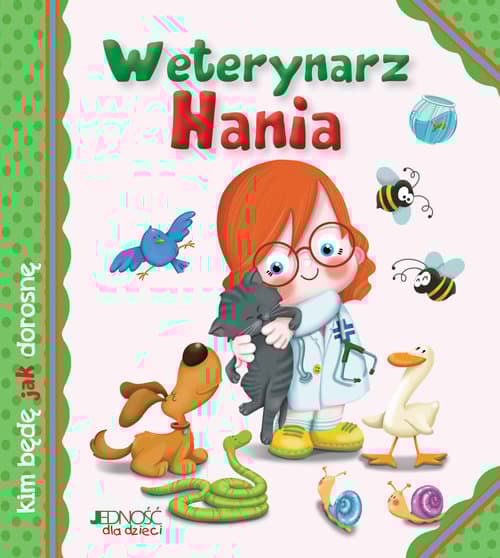 Prezentowana książeczka to naprawdę niezwykła historia! Dzięki niej dzieci będą miały okazję poznać sympatyczną Hanię, której pasją są zwierzęta. Śledzenie fascynujących perypetii naszej dzielnej bohaterki to nie lada gratka szczególnie dla małych fanek i małych fanów czworonogów, którzy marzą o zawodzie weterynarza. Historyjka opowiedziana na kartach tej książeczki jest zaskakująca i zabawna. Tyle w niej ciekawych przygód, ile łatek na sierści psa, dlatego z pewnością spodoba się i chłopcom, i dziewczynkom. W serii ukazała się także: „Baletnica Amelia” Odbiorcy – mali miłośnicy zwierząt – chłopcy i dziewczynki; – dorośli, którzy chcą podarować dzieciom sympatyczną książkę. Dlaczego warto nabyć tę książkę – jest wyjątkowa i pełna humoru; – rozwija dziecięcą ciekawość świata; – jej barwne ilustracje spodobają się małym czytelnikom; – sprawi, że dzieci pokochają czytanie.