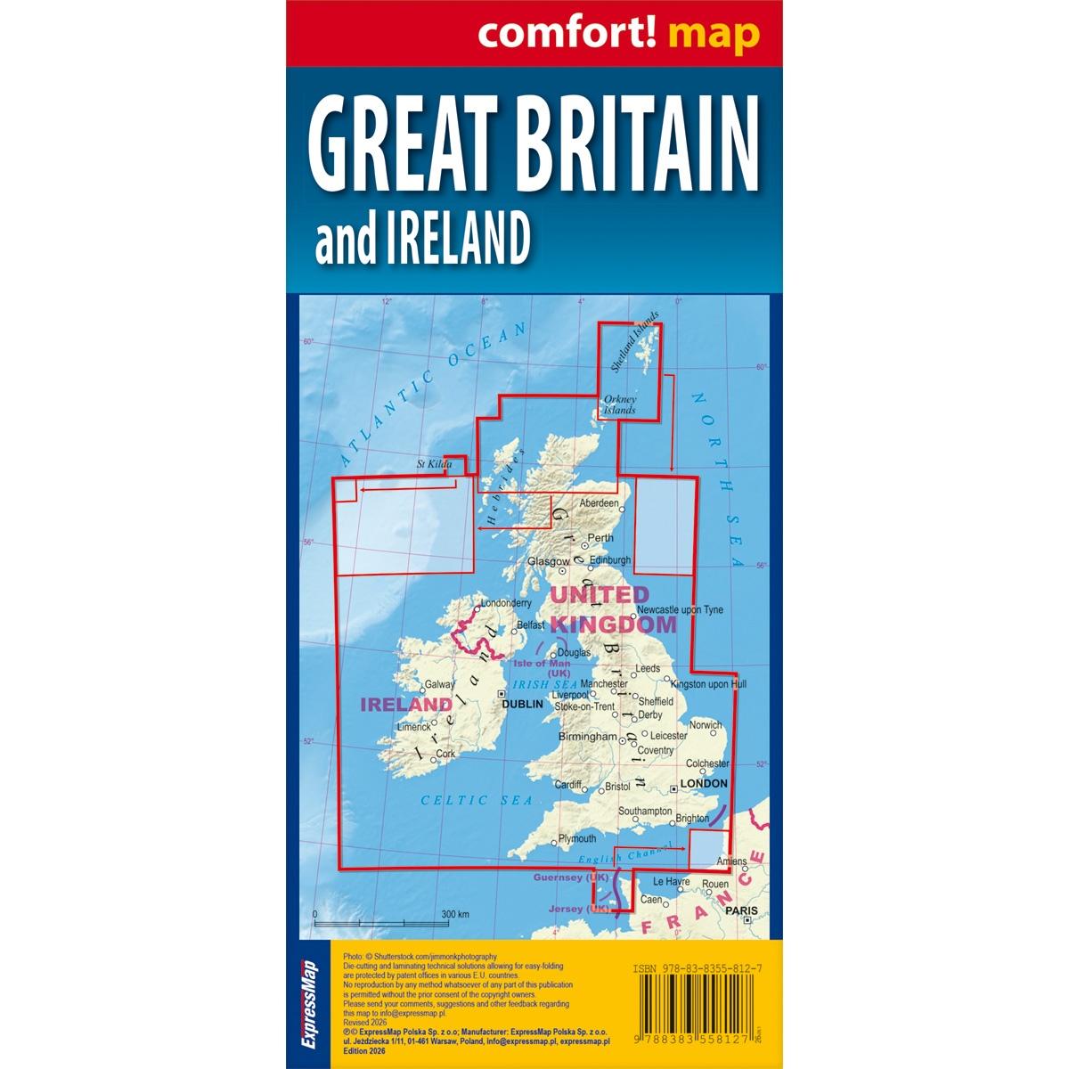 Tajemnicze budowle megalityczne w Stonehenge, majestatyczny zamek w Edynburgu, a może malownicze jeziora w parku narodowym Lake District? Dwustronnie laminowana, wygodna w składaniu mapa samochodowo-turystyczna Wielkiej Brytanii i Irlandii pomoże Ci dotrzeć do wszystkich interesujących atrakcji.