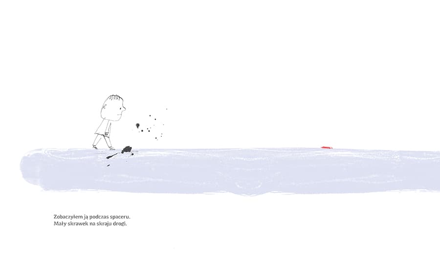 Na spacerze dziecko znajduje niewielki skrawek czegoś, małą kreskę. Podnosi ją ze ścieżki, wkłada do kieszeni i o niej zapomina. Nagle jednak okazuje się, że kreska żyje… Oto początek niezwykłej przygody dziecka, a później dorosłego człowieka i jego kreski. Piękna metafora życia artysty, ale też każdego z nas.