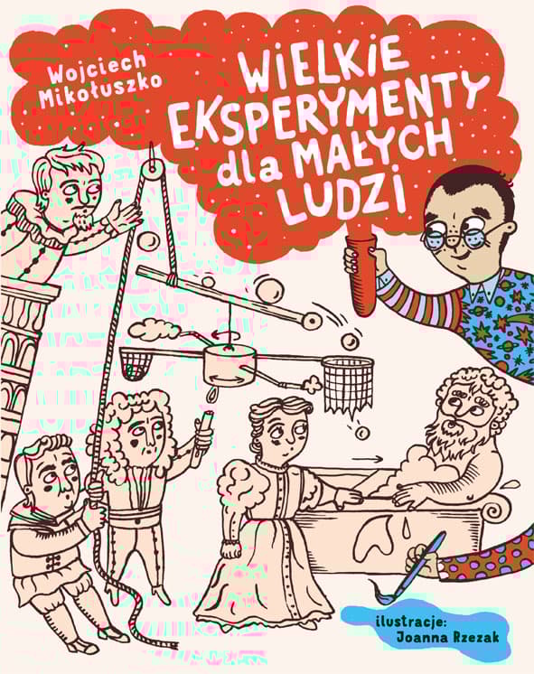 Dziennikarz naukowy i autor książek dla dzieci Wojciech Mikołuszko, biorąc się za pisanie książki Wielkie eksperymenty dla małych ludzi nie miał pojęcia, co go czeka! By opisać poczynania wielkich naukowców, których odkrycia zmieniły nasz świat, wgryzł się w historię nauki od starożytności aż po czasy współczesne - od Archimedesa, przez Galileusza, Newtona i Darwina, po Paula Harrisa. Dom autora zamienił się w jedno wielkie laboratorium. W kredensie i lodówce pojawiły się doniczki z kwiatami, na parapecie zamieszkały dżdżownice, w kuchni po stole walały się elektromagnesy, a w łazience moczyły się w occie kości i muszle. Kto by pomyślał, że autor przygotowując książkę musi skakać ze stołu, puszczać papierowe samoloty i opryskiwać się wodą z ogrodowego węża? Ale Mikołuszko nie mógł przecież namawiać dzieci do robienia eksperymentów, których sam by nie przetestował! Na szczęście wszystkie niezbędne przedmioty do ich wykonania znalazł w spiżarni, schowku z chemią gospodarczą, łazience i domowej apteczce. Uff, ciężka jest praca pisarza. Ale jaka ciekawa! A efekt? Zobaczcie sami! Ps. Sceny z życia pomysłowych naukowców i dzielnego Wojciecha Mikołuszki narysowała Joanna Rzezak.