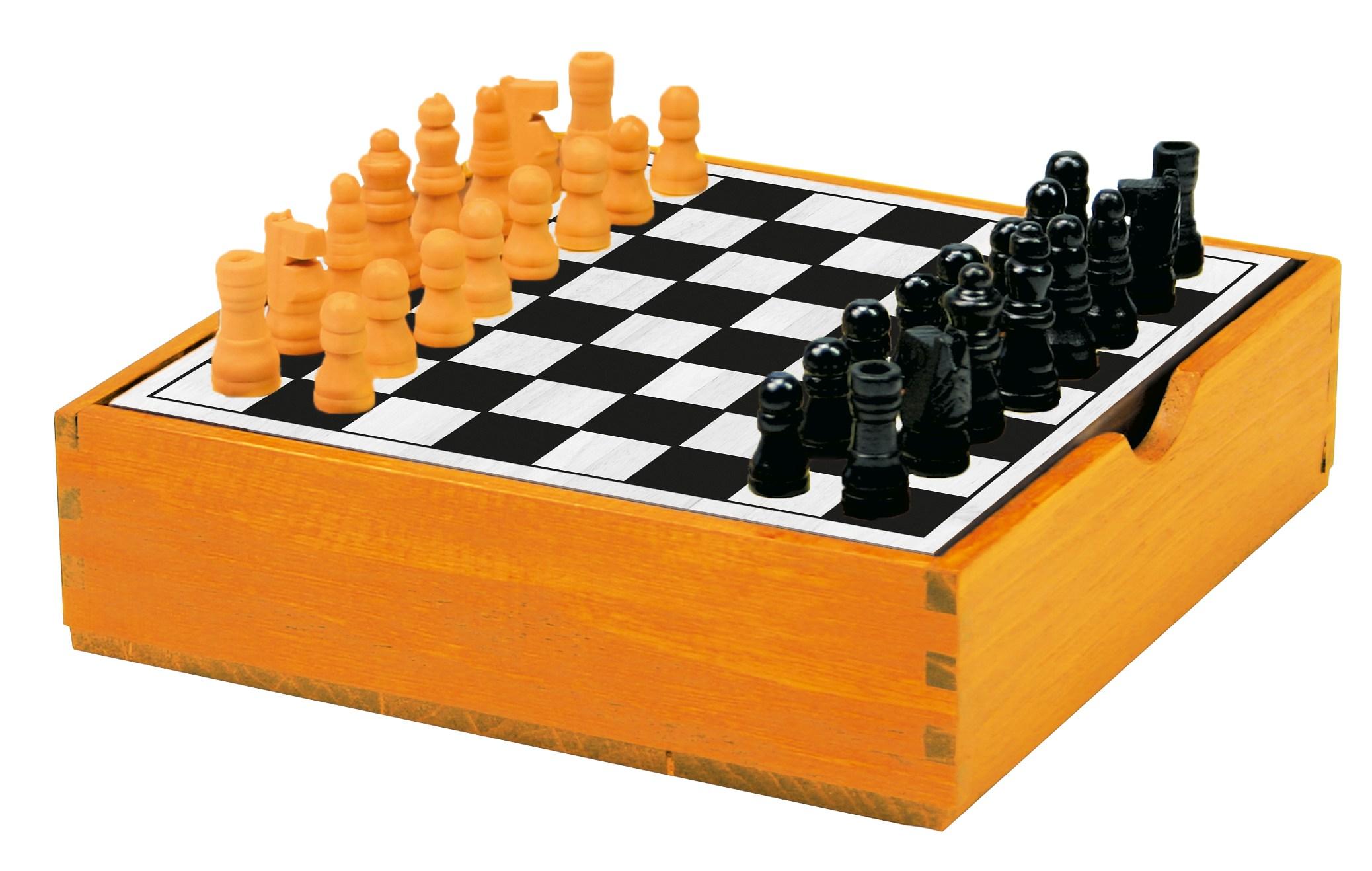 KLASYCZNIEJ BYĆ NIE MOŻE! Pole bitwy leży przed tobą – 64 pola i 32 szachowe bierki. Szachy fascynują ludzi od siódmego wieku naszej ery i … nic dziwnego. To niewielkich rozmiarów, solidne wydanie tej gry zawiera drewniane bierki schowane w niedużym, również drewnianym pudełku. Zawartość: 32 drewniane pionki (16 białych, 16 czarnych), drewniana szachownica, instrukcja. Gra logiczna dla 2 graczy w wieku 7+.