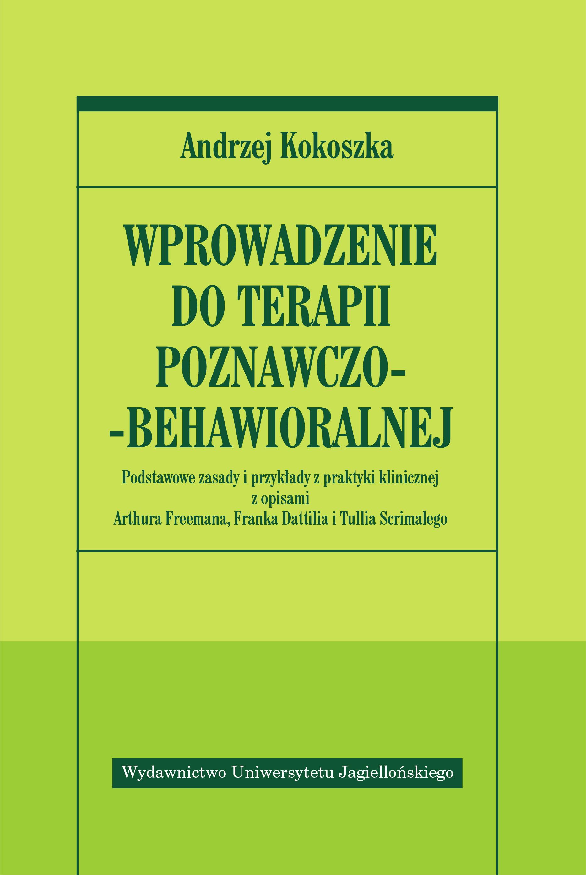 W języku polskim opublikowano kilka tłumaczeń uznanych podręczników tej szybko rozwijającej się dziedziny psychoterapii. (…) Książka Andrzeja Kokoszki, będąc dobrym podręcznikiem terapii-behawioralnej, nie usiłuje z nimi konkurować, wydaje się ich naturalnym uzupełnieniem. (..) Mimo stosunkowo niewielkiej objętości, zawiera właściwie wszystkie informacje potrzebne zarówno początkującemu terapeucie, jak i studentowi, psychologowi lub psychiatrze chcącemu zapoznać się z teorią i praktyką terapii poznawczo-behawioralnej. Moim zdaniem, książka Andrzeja Kokoszki jest interesującą lekturą zarówno dla studentów psychologii, medycyny, lekarzy, psychologów, jak i osób pragnących poszerzyć swoją wiedzę o metodzie psychoterapii, która w znaczący sposób wpływa na myślenie i postrzeganie świata w rozwiniętych społeczeństwach XXI wieku. Z przedmowy prof. Tomasza Wolańczyka W książce znajdują się opisy terapii prowadzonych przez moich wybitnych nauczycieli. Artur Freeman szczegółowo przedstawił cały proces terapii pacjenta z depresją, omawiając dokładnie przebieg większości sesji terapeutycznych. Tullio Scrimali opisał i zilustrował opracowaną przez niego metodę poznawczej terapii schizofrenii, Frank Dattilio – terapii małżeńskiej. (Z wprowadzenia autora książki)