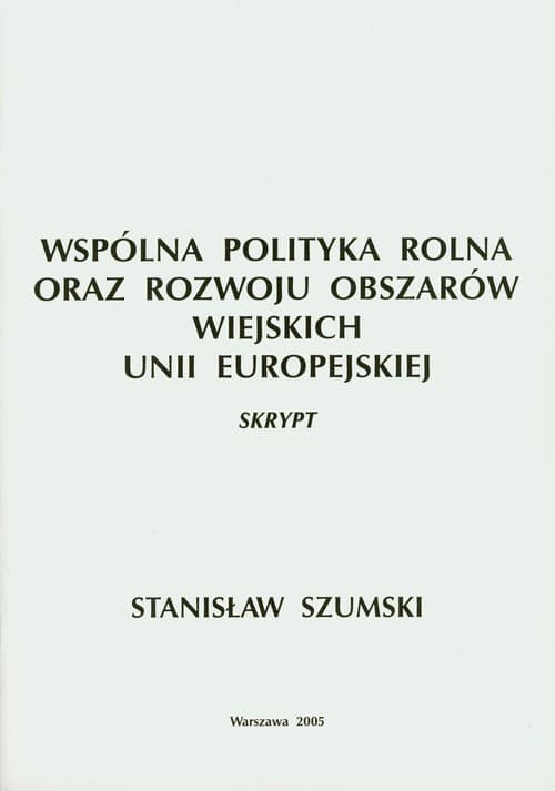 Niniejszy skrypt ma przybliżyć odbiorcom, przede wszystkim studentom kierunków studiów związanych z rolnictwem, problematykę wsparcia sektora rolno-spożywczego oraz obszarów wiejskich w polityce Wspólnoty Europejskiej.