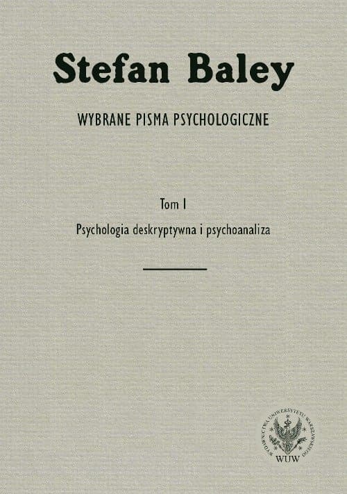 Pierwszy tom zbioru prac wybranych Stefana Baleya dotyczy psychologii deskryptywnej (m.in. uczuć przekonaniowych i przedstawieniowych) oraz psychoanalizy (m.in. psychologicznych uwarunkowań twórczości Szewczenki, Słowackiego i Żeromskiego). Dwutomowa edycja obejmuje najważniejsze publikacje, które ukazały się w języku polskim, a także polskie przekłady najbardziej znaczących, a nieznanych dotychczas tekstów, jakie zostały opublikowane w języku niemieckim oraz ukraińskim. Stefan Baley to jeden z najwybitniejszych przedstawicieli filozoficznej szkoły lwowsko-warszawskiej i twórca polskiej szkoły psychologii wychowawczej, a w latach 1928—1934 kierownik Katedry Psychologii Wychowawczej Uniwersytetu Warszawskiego. Publikacja ta jest owocem współpracy Instytutu Filozofii i Wydziału Psychologii UW i ma charakter jubileuszowy: na rok 2015 przypadała 130. rocznica urodzin Stefana Baleya, a w 2016 obchodzone jest 200-lecie Uniwersytetu Warszawskiego. Książka adresowana do psychologów (zwłaszcza wychowawczych), teoretyków wychowania oraz studentów i badaczy w tych dziedzinach, a także historyków nauki i wszystkich osób zainteresowanych rozwojem polskiej myśli psychologicznej. academia