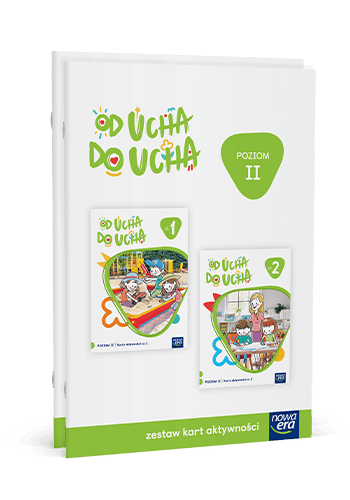 Zestaw kart aktywności „Od ucha do ucha”, poziom II,  zawiera dwie części kart z ćwiczeniami, które doskonalą umiejętności ze wszystkich obszarów rozwojowych zawartych w podstawie programowej.