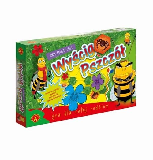 Witaj na kolorowej łące. Pomóż pszczółkom skakać z kwiatka na kwiatek i dotrzeć do ula unikając groźnych pająków. W przeprawie pomoże ci spostrzegawczość, dobra pamięć i odrobina szczęścia w rzucie kostką. "Wyścig pszczół" to pamięciowo - losowa gra z prostymi zasadami, która spodoba się zarówno dzieciom, jak i dorosłym. Zawartość pudełka: plansza, 6 pionków, 6 podstawek, kostka, 37 tabliczek, instrukcja. Liczba graczy: 2-6 Wiek 5+