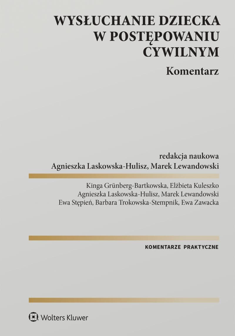 „Wysłuchanie dziecka w postępowaniu cywilnym. Komentarz” to opracowanie przedstawiające szczegółową analizę przepisów regulujących wysłuchanie dziecka w postępowaniu cywilnym. Książka łączy ujęcie prawne oraz psychologiczne, podkreślając znaczenie wrażliwości i profesjonalizmu w kontakcie z małoletnim.