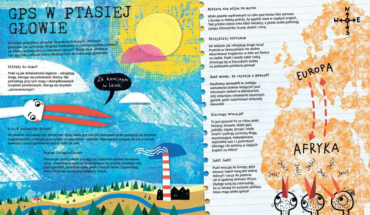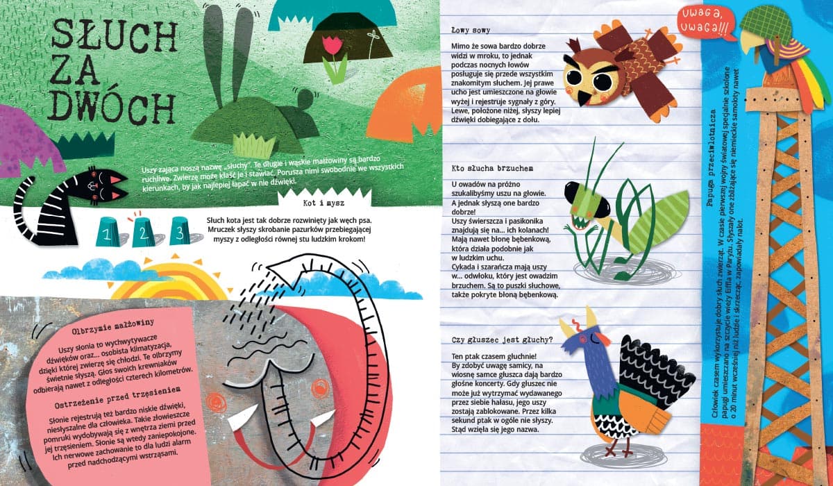 • Po co owady wysyłają zapachowe esemesy? • Co to jest kubek smakowy? • Gdzie jest ukryty twój własny GPS? • Czym się zajmuje papuga przeciwlotnicza? • Dlaczego łokieć jest nieczuły? • Które zwierzę używa ogona jako klimatyzacji? • Po co ptakom żelazne kulki w uszach? • Kiedy pies zachowuje się jak kompas? • Dlaczego ryby płynące w ławicy nie zderzają się ze sobą? • Jak ludzie i zwierzęta odbierają sygnały z otoczenia i z głębi ciała? Odpowiedzi znajdziecie w tej pełnej dowcipnych ilustracji książce. A żeby lepiej wytłumaczyć działanie narządów zmysłów, dodaliśmy kilka prostych eksperymentów, które wyjaśnią, jak one działają. Marta Maruszczak – z wykształcenia biolog i antropolog, studiowała też medycynę, jednak zamiast pracować przy mikroskopie lub na wykopaliskach, związała się zawodowo z dziennikarstwem. Będąc mamą trojga dzieci, w tym bliźniaków, przez kilkanaście lat kierowała czasopismami dla młodych rodziców. Obecnie pisze artykuły o zdrowiu, lecz największą przyjemność sprawia jej tworzenie popularnonaukowych książek dla młodszych i starszych czytelników. Ma w dorobku ponad 25 tytułów. Napisała też kilka poradników z dziedziny psychologii, wychowania i zdrowia. Z zamiłowania długodystansowa rowerzystka, ogrodniczka i obserwatorka mruczących, czworonożnych domowników: dawniej Tupeta, Filuta i Burbona, a teraz Bemola i Brysia. Artur Gulewicz urodził się w 1978 roku. Absolwent łódzkiej ASP. Zajmuje się ilustrowaniem i projektowaniem książek. Zaczynał od projektowania podręczników, a dziś skupia się głównie na ilustrowaniu książek dla dzieci, gdyż jak sam mówi, to sprawia mu największą radość i w tym może dać upust wyobraźni. Tworząc ilustracje, miesza różne style. Łączy pastele z akwarelami i zdjęciami, dążąc do uzyskania jak najciekawszego efektu. Współpracuje z czołówką polskich wydawnictw, a także wykonuje projekty dla UNICEF-u.
