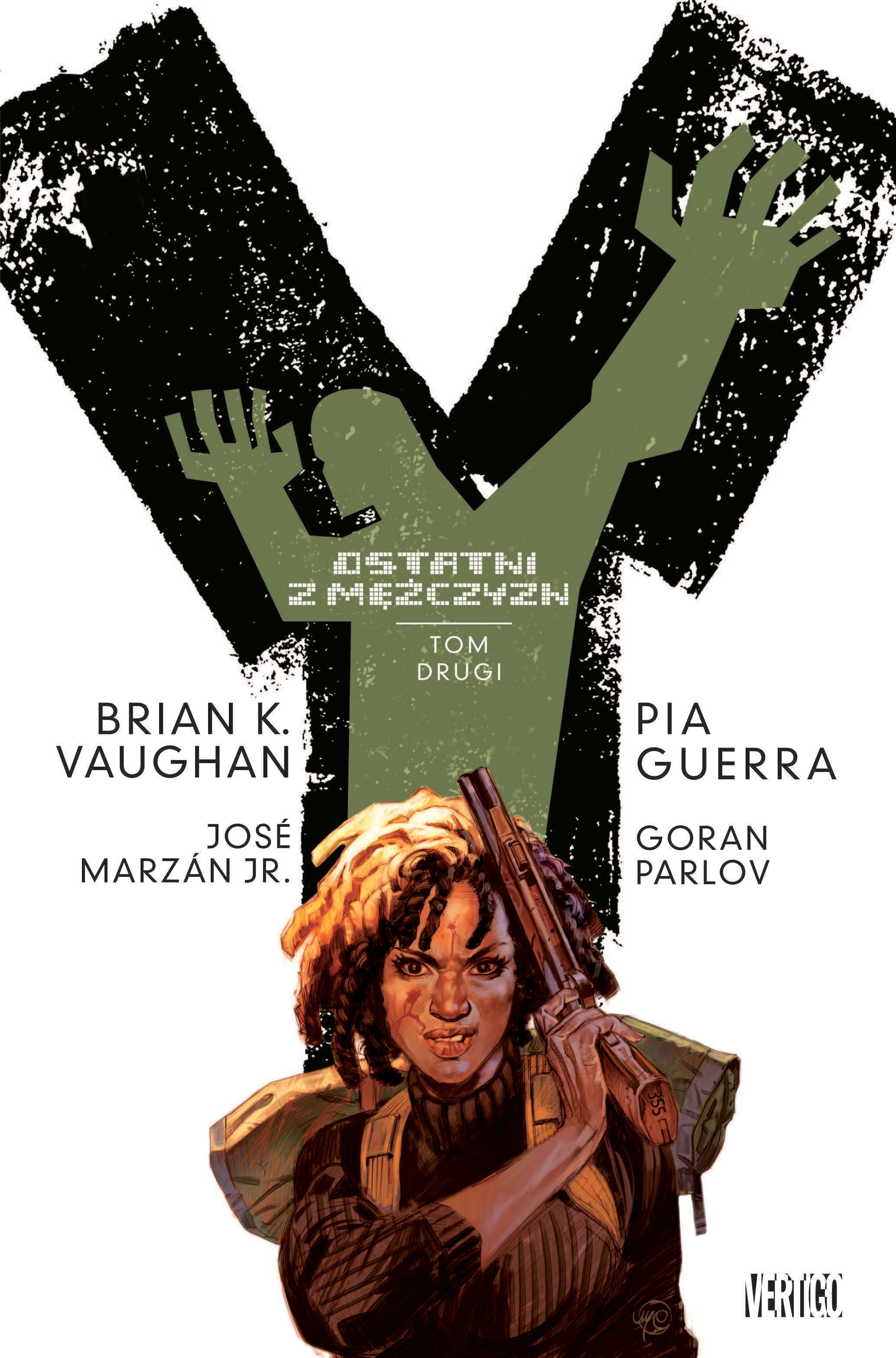 Drugi tom wyróżnionej trzema Nagrodami Eisnera opowieści drogi słynnego scenarzysty Briana Vaughana rozgrywającej się w postapokaliptycznym świecie. W roku 2002 następuje katastrofa – w jednej chwili wymierają wszystkie ssaki płci męskiej, w tym samce rodzaju ludzkiego. Nie wiadomo, co jest przyczyną tragedii. Kobiety zostają same – co bynajmniej nie oznacza to, że wraz z mężczyznami odchodzą do historii przestępstwa i wojny. Z nieznanych powodów nadal żyją dwudziestoparoletni iluzjonista Yorick Brown oraz jego małpa – również samiec – Ampersand. Wraz z pewną panią genetyk i agentką numer 355 z tajemniczej organizacji Cuper Ring przemierzają Amerykę, by dotrzeć do Kalifornii. Właśnie tam znajduje się laboratorium, w którym będzie można sprawdzić, dlaczego Yorick i Ampersand przeżyli zarazę. Podróż jest najeżona wieloma niebezpieczeństwami, gdy cały kraj jest pogrążony w chaosie, a na ostatniego mężczyznę na Ziemi polują różne organizacje feministyczne i wywiadowcze. Scenariusz opowieści napisał amerykański twórca Brian K. Vaughan (Ex-machina, Saga, Runaways), zdobywca aż dziesięciu Nagród Eisnera. Rysunki są dziełem kilku autorów, przede wszystkim kanadyjskiej graficzki i scenarzystki Pii Guerry (Doktor Who, Simpsonowie komiks), mogącej się poszczycić nagrodami Eisnera, Harveya i Shustera.Szczegółowe informacje na temat książki Y - ostatni z mężczyzn Tom 2